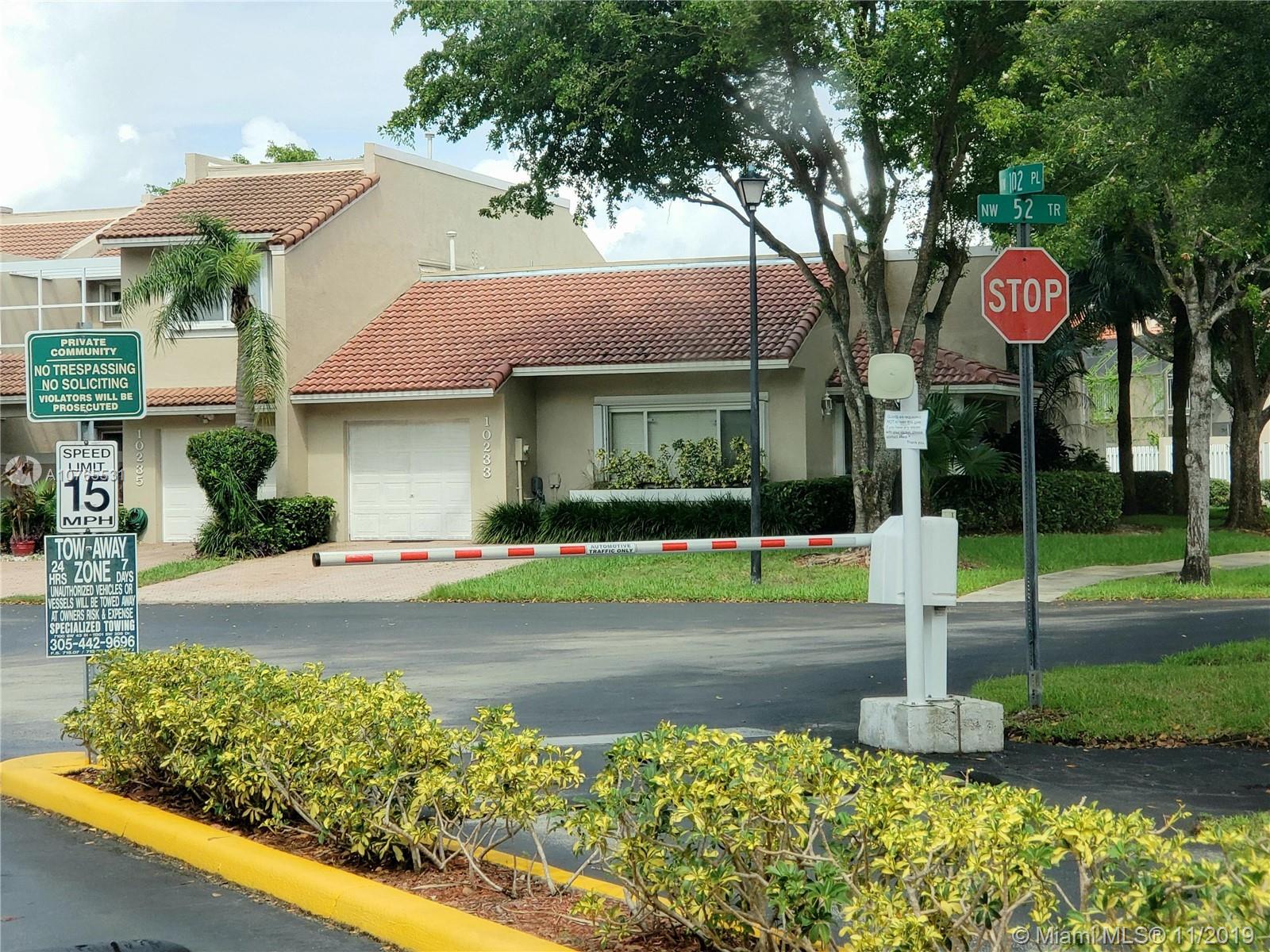 Come and see this one-story, corner unit townhouse with lots of natural light in the gated community, Doral Greens! This unit is steps away from the guardhouse and has a great open floor plan! Roof was done in 2016! Residents have access to the Country Club, gym, pool and other amenities! Call listing agent today!