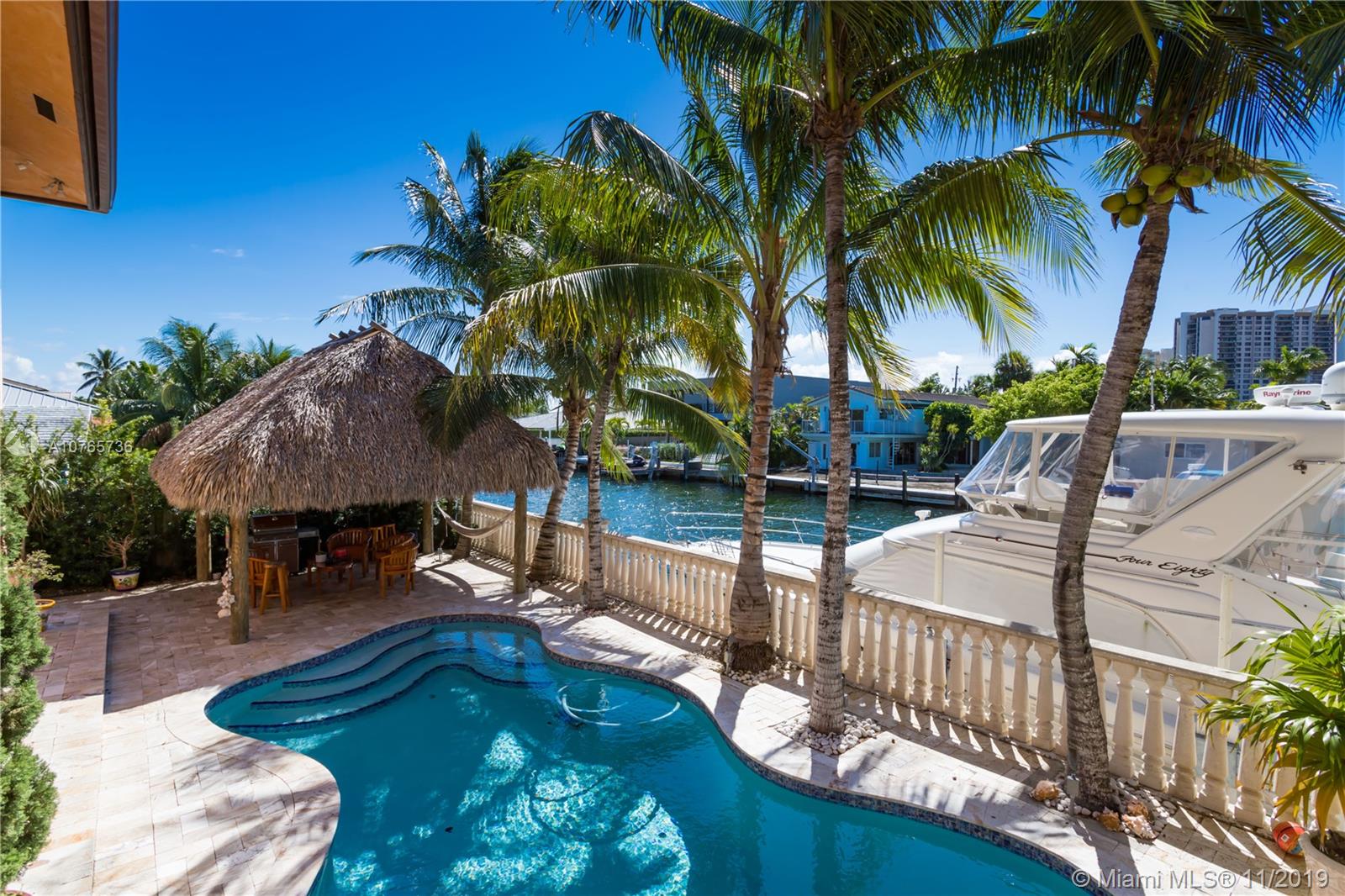 Sans Souci Lowest $ Per Sq Ft. 6219 SqFt Mediterranean Newer built 1990,Remodeled-2018 Exquisite Decorator finishes, Solid Concrete Second floor. Grand Foyer, 30 foot High Ceiling’s Hurricane Impact windows & doors,custom lighting and window treatments, 24 inch marble flooring,Huge open Granite Center Island Kitchen W/breakfast room.Huge bedrooms with en suite baths,2-Master suites,Custom media room 20X50 with custom built-in Wine cellar and humidor. In-Laws quarters, Maids quarters, Tropical Pool Deck & Chickee Hut, brand new 75 foot Seawall & Dock. All the bells and whistle‘s you could want,one of the largest canal homes in Sans Souci Estates.Direct ocean access No fixed bridges to bay.24 hour Guard Gated Community & Tennis Center across from the entrance. Great for Large Growing Family.