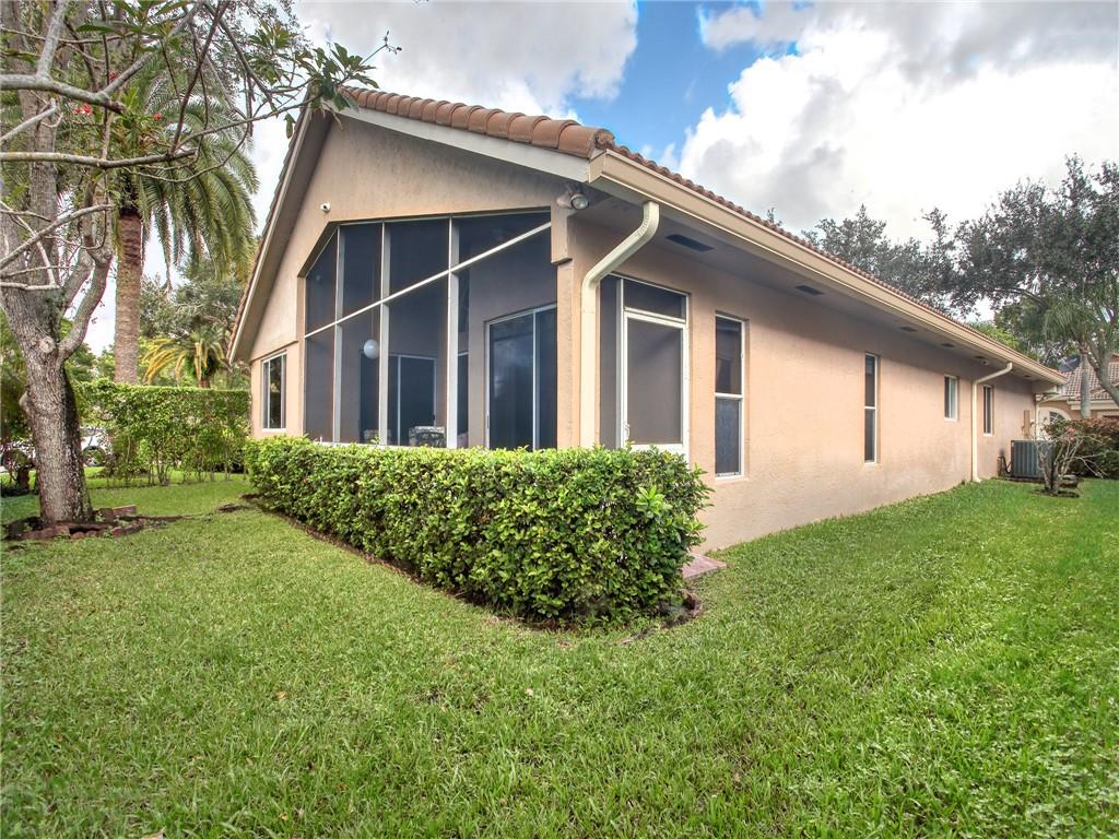 FABULOUS LOCATION WITH A BRAND NEW ROOF + brand new gutters on a corner lot! Your newer updated eat-in kitchen boasts beautiful exotic granite, stainless steel appliances, & loads of custom cabinetry. This well cared for home boasts an open flowing layout & architecture with high ceilings and just minutes from the Sawgrass Expressway. Split bedroom plan includes a huge master bedroom suite and nice sized bedrooms. Top of the line washer & dryer in the inside utility room. Additional upgrades include diagonally laid tile, recessed lighting, alarm & camera system. Community pool & zoned for great schools! ALL of your yard work is included in the maintenance! Very motivated seller shows beautifully!