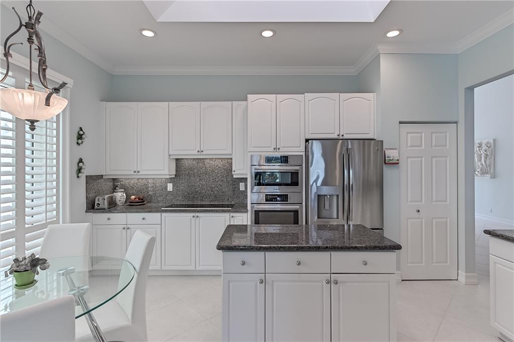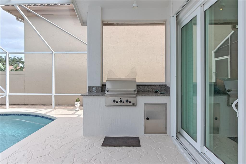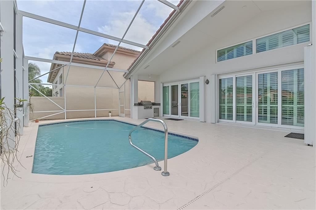 Beautiful & comfortable 3bed/2.5bath waterfront home w/ upgrades GALORE! GREEN climate-friendly home w/ Solar panels (avg power bill of $23 per month, $10 during the winter months) New roof, hurricane impact windows & doors, pool pump 2017, Trane HVAC 2016. Updated White kitchen w/ granite, Bosch cooktop, oven, microconvection oven & dishwasher. Two living areas, formal dining & bar top perfect for entertaining. Large Master w/ vaulted ceiling, jetted tub, Grohe fixtures, 2 walk in closets & pool/lake views. Freshly painted exterior 2019, interior 2018, neutral décor & plantation shutters. Swim in the saltwater pool, relax on the screened lanai, BBQ & entertain in your outdoor kitchen w/ grill & watch the ducks on the lake! Santa Barbara is gated & close to schools, shopping & expressways