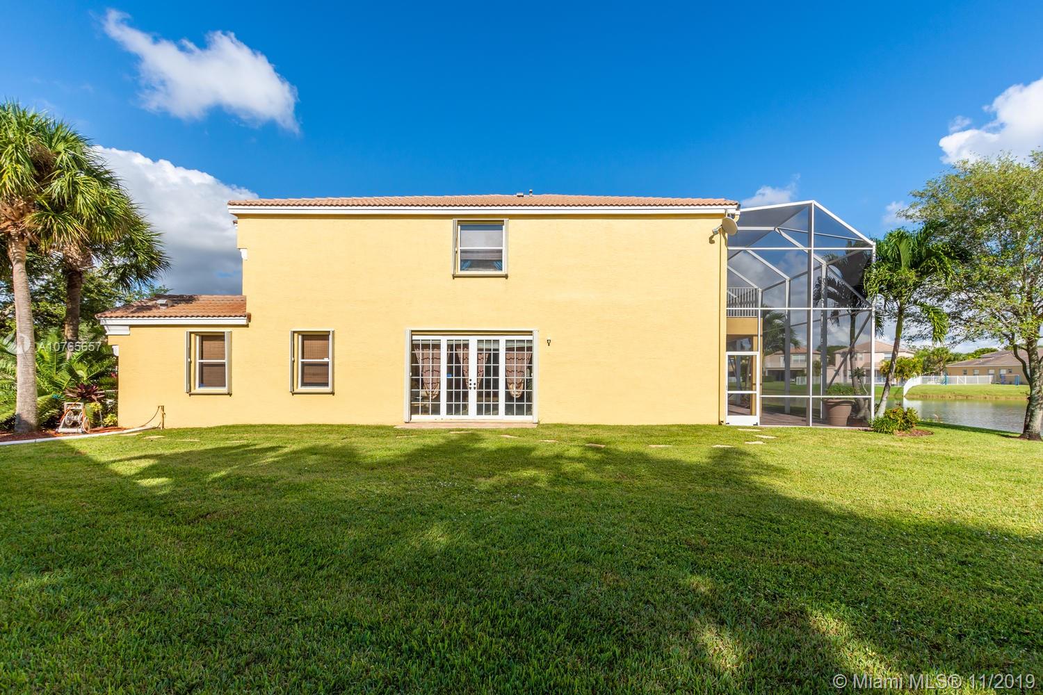 Gorgeous two-story house featuring 4 Bedrooms, 3.5 Bathrooms, office and 2 Car garage with a stunning lakefront view in prestigious RIVIERA ISLES. One full bedroom and bathroom is on the first floor. Property has Tile on the ground floor and wood flooring on the second floor. Enjoy the Huge living room, Dining rooms and Family room areas. Spacious Kitchen w/ wood cabinets & stainless-steel appliances, generous butler pantry, screened patio & Huge yard. Property is on a cul-de-sac and offers an over-sized master bedroom w/ sitting area & large balcony to enjoy the scenic lake view, large walk-in closet. Laundry room on 2nd floor. Accordion shutters throughout the house. Walk to the beautiful clubhouse & enjoy the amenities, pool,large gym, tennis & basketball courts. Close to Highway I75.