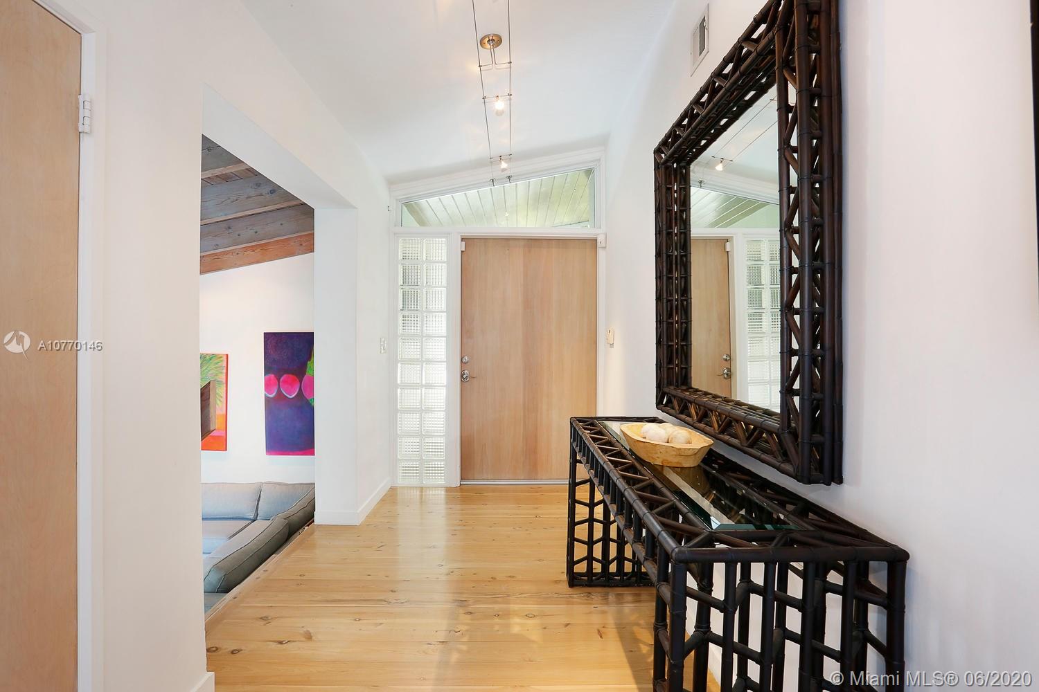 Stunning, coastal contemporary-style home set back within a lush tropical hammock of exotic palms & mature oaks. Light-filled living spaces w/dramatic, vaulted wood beamed ceilings & natural finish, wide-plank cypress flooring. Multi-level layout offers expansive living & dining areas w/walls of glass overlooking the pool & garden.Totally renovated, european-style kitchen features wood cabinetry, stone countertops, gas cooktop, double wall-ovens & wine refrigeration.Enjoy outdoor living & entertaining on the covered terrace w/wet bar that overlooks the ultra-private pool surrounded by travertine pavers.Additional renovations include: impact windows, roof, 3 new AC systems, Trex decking on roof-top terrace & wrap-around balcony. Walk to the Grove village’s boutiques, cafes & bayfront parks.