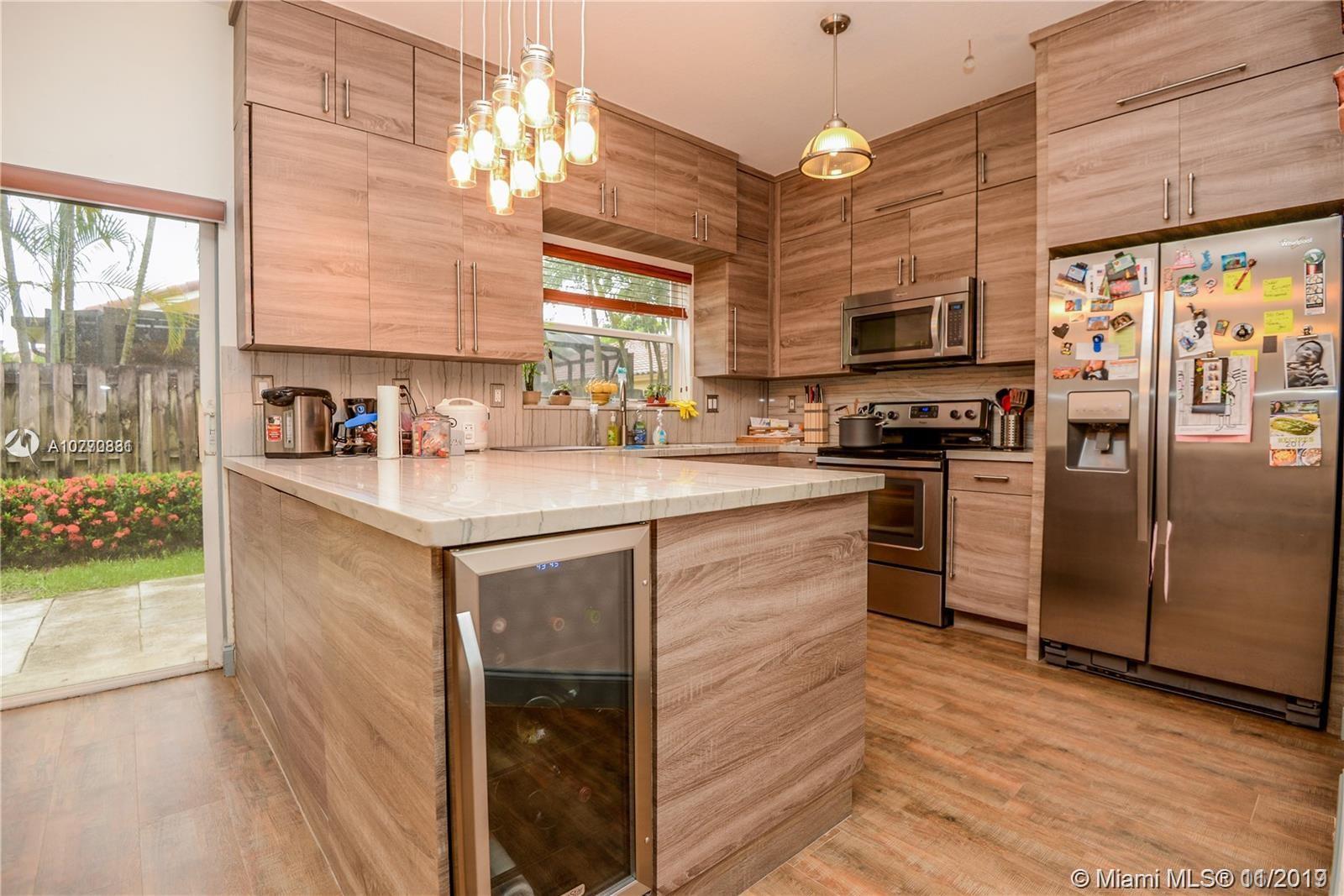 Completely upgraded!!! Spacious 4 Bedroom Townhouse with one garage and space for 3 cars in the driveway. Very Bright corner unit. New modern wood floors, amazing kitchen design with exotic granite countertop, built in wine cooler, stainless steel appliances. Renovated bathrooms, sliding glass doors to the patio, large fenced patio for your pets or entertainment. Ready to move in. Community includes amenities, Pet friendly. Unit is ready to move in! SqFt (Liv) 1,941 _ SqFt (Adj) 1,849 _ Total SqFt: 2,197 per Broward County Property Appraiser's Website.