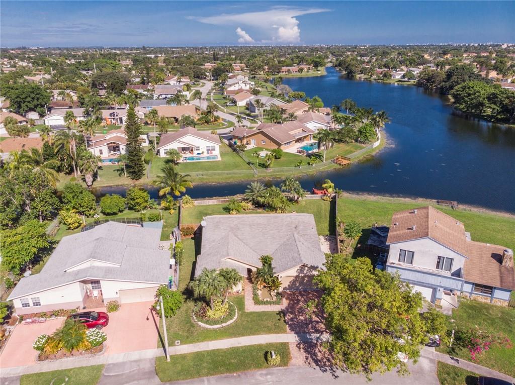 Beautiful Springtree Lakes home on an enchanting lake with views from almost every room. Well maintained single family home with 3 spacious bedrooms and 2 bathrooms with over 2,000 sq ft. Home has porcelain tile throughout the living room area with custom kitchen cabinets with granite counter tops. Bathrooms have been upgraded. Great pool area with travertine, enough space for family and friends. Custom Deck to relax by the water, go fishing or spend some quality time with family overlooking the water.
