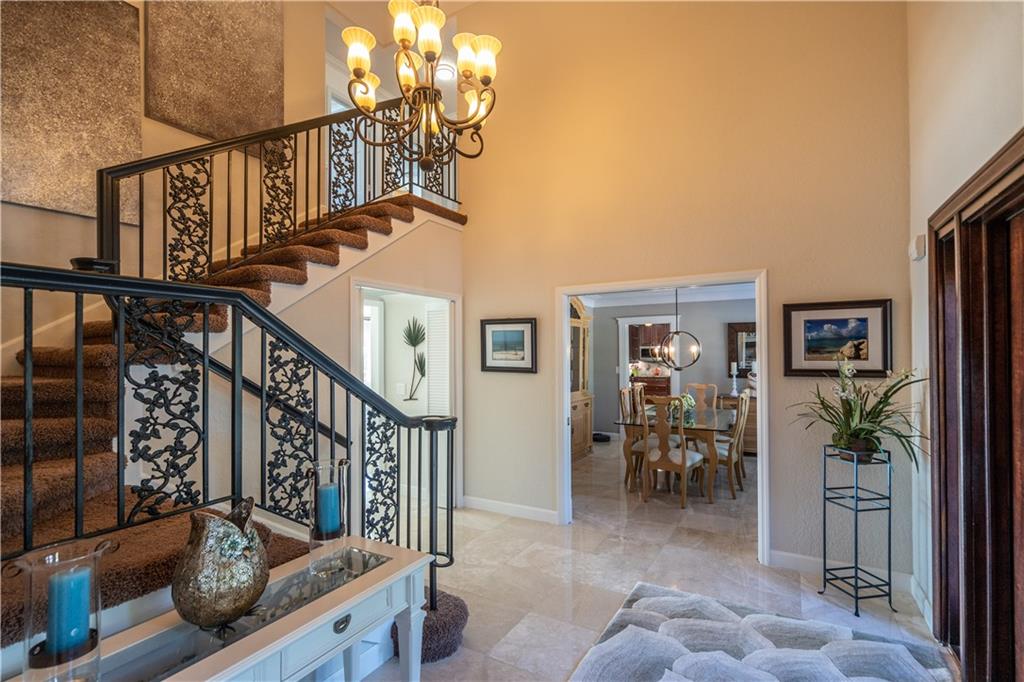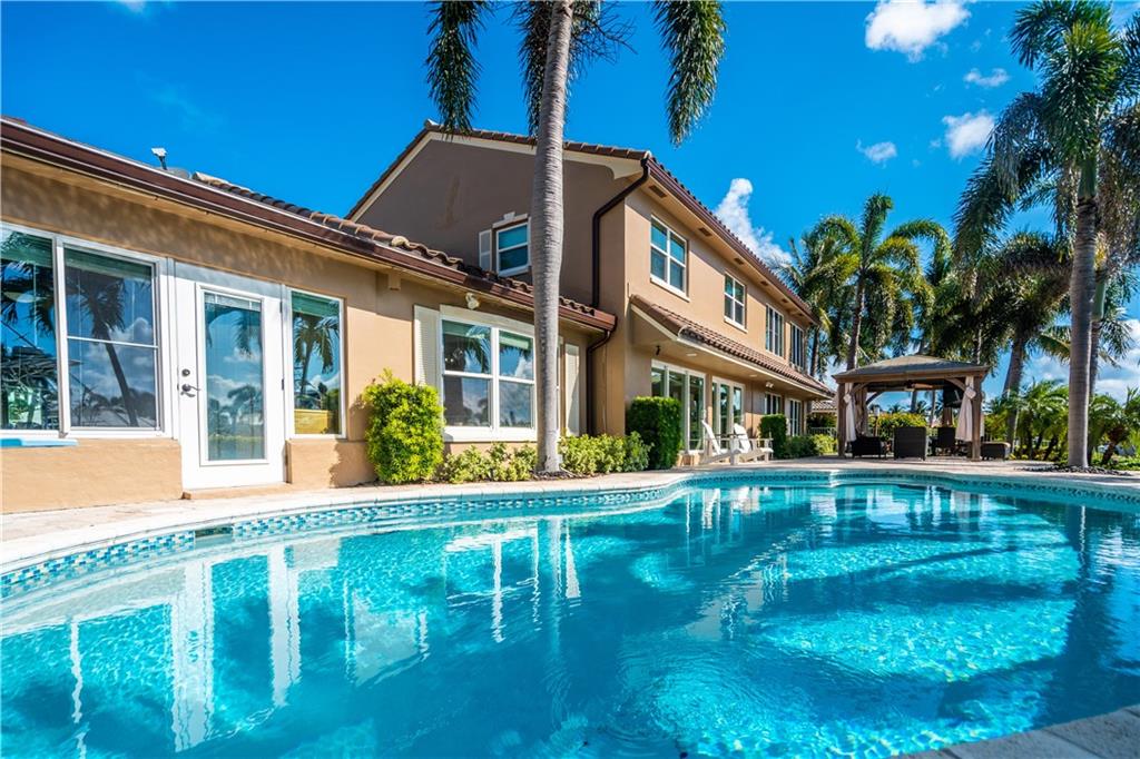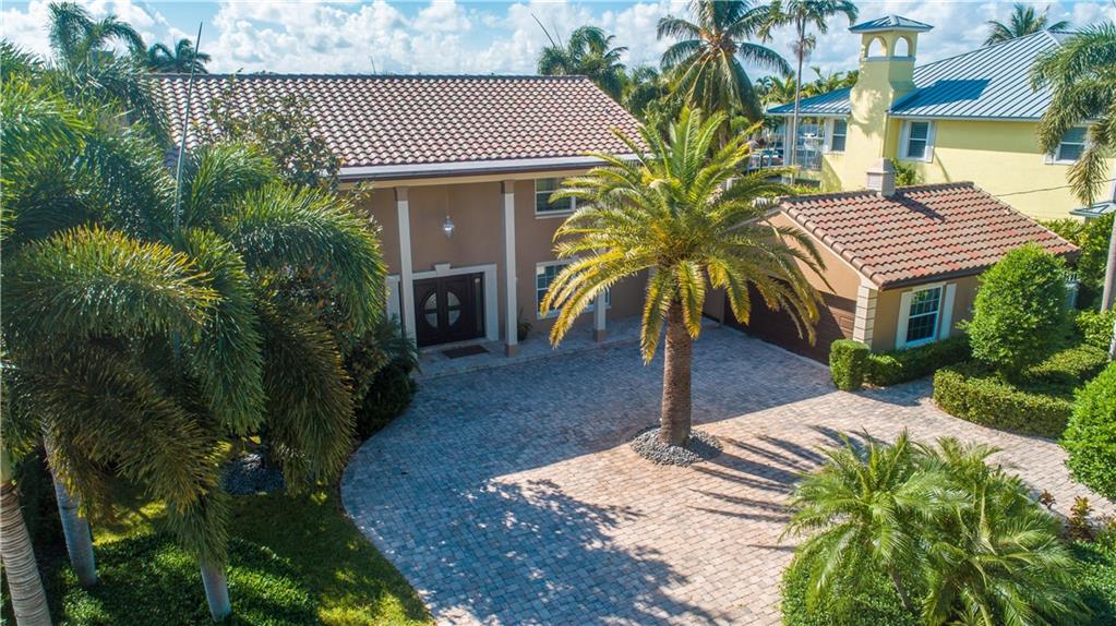 Beautiful stately two-story waterfront home with Intracoastal views. Move-in ready with over 4200 sq.ft.of air conditioned space and located on the end of a cul-de-sac. 5 bedrooms (one on the main level) and 3.5 baths, spacious living room and formal dining room. Open kitchen with granite counter tops, wood cabinets, stainless steel appliances, island and Induction cook top. Large family room, separate office/fitness room. Coastal style decor, marble flooring, impact windows and doors, 2019 tile roof and attached 2-car garage with circular driveway. Breathtaking views of the Intracoastal from the inside and outside. 105 ff of water, salt water pool, new dock, raised seawall and new 400 amp electric. Minutes to the Inlet.The garage is equipped with two, 50 amp service for 2 electric cars.