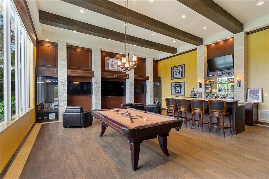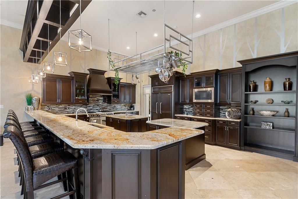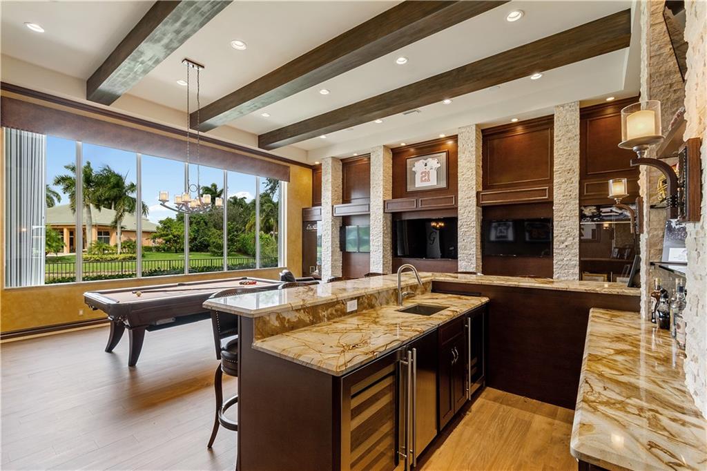Magnificent lakefront, pool home in exclusive Stonebrook Estates. The rooms in this luxurious home are perfectly distributed, custom designed and loaded with upgrades! The true master suite has a full sitting room with relaxing lake views and spa-like bathroom. The massive kitchen has 2 islands, a long snack counter, plenty of cabinetry and a walk-in pantry. This is the ultimate property for entertaining with a large game room with bar (perfect for watching your favorite teams), cozy movie theater, half basketball court, pool with spa and summer kitchen! Double doors open to the foyer which flows to the beautiful living room with fireplace and wet bar. Over a half acre lot in the maintained, guard-gated community with clubhouse, playground, basketball court & more. "A" rated school zone.