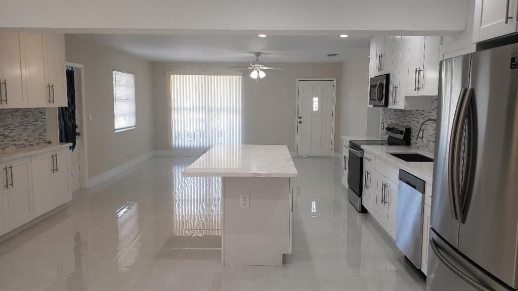 Come see this Beautifully Remodeled 4 bedroom 3 bathroom home in the Heart of Riverland. The home has been fully remodeled with 2 en-suite Master Bedrooms. The home has 24 inch modern white porcelain tile floors throughout the main areas, 12x24 inch wood style tile in the 4 bedrooms. The kitchen is Marvelous with 42 inch real wood cabinets, a bartop for Entertaining guests and white river granite with a tile back-splash finish. Gas water heater!,freshly painted inside and out. All new fixtures, fans and high hat lighting. High end Samsung stainsteel appliances are provided, along w/ brand new washer and dryer. New vanities and tile in all 3 bathrooms, and new baseboards throughout. The home is located in between I-95 and Turnpike, and local publix within 1 mile. Don't miss out on this Gem!