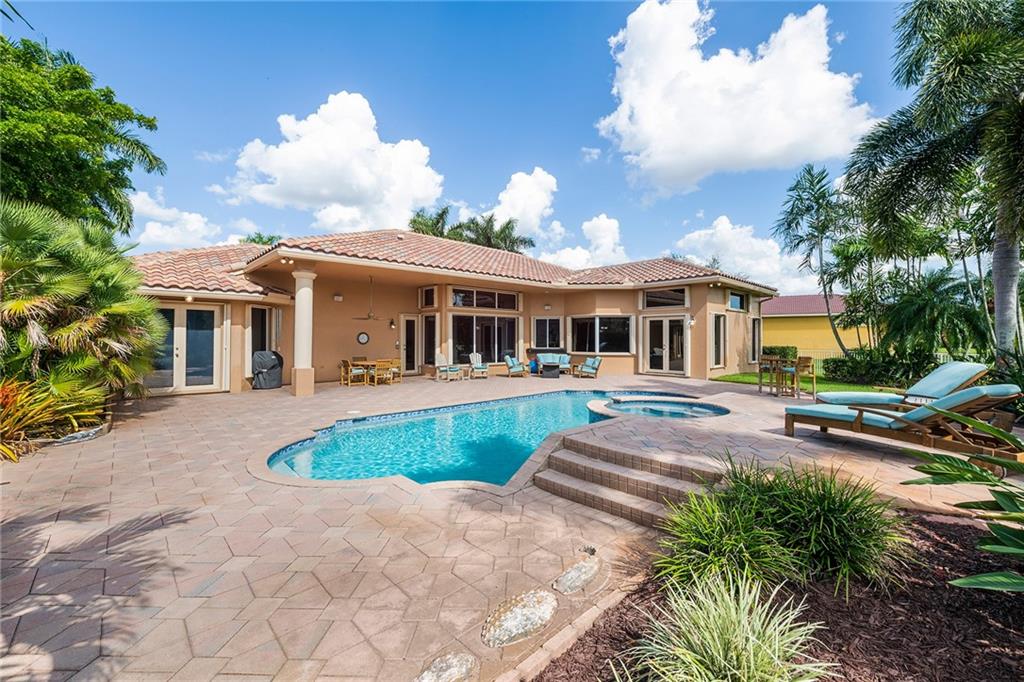 Beautiful home located in the prestigious Westridge community! Single-story waterfront home offers a split floor plan with five bedrooms & four bathrooms. Living spaces include a formal living & dining room, open kitchen with SS appliances & family room. Master bedroom features an oversized walk-in closet with open space storage & master bath features a separate tub & shower, dual sinks plus vanity area. Additional features include an ensuite bath, Jack & Jill bath, cabana bath with steam shower, three car garage with epoxy flooring & storage, 2016 roof, updated diamond brite, accordion shutters & full house generator with 500 gallon propane tank. Outdoor area with breathtaking water view & lush landscaping offers a great space for entertaining. Located in Davie's A-rated school system.