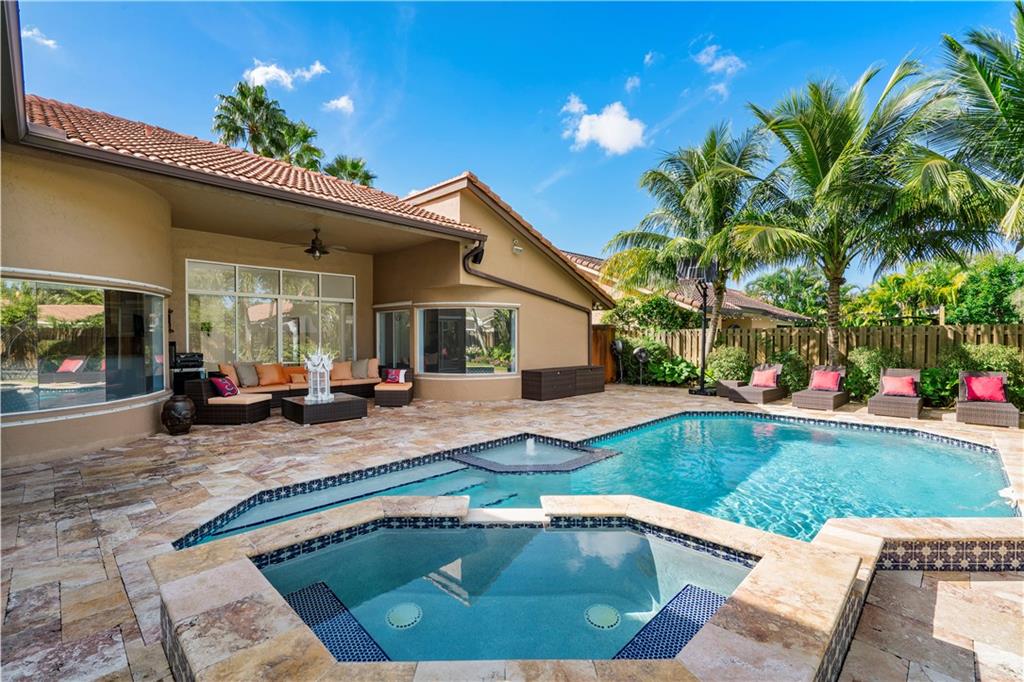 Fabulous North Springs home. Light, bright and well maintained. 4 bed 3 bath, spacious split plan layout, vaulted ceilings. Tastefully updated Kitchen, flooring, bathrooms, closets, interior lighting and chandeliers. 2 AC units. Hurricane Shutters. Professionally landscaped. Fenced in backyard with gorgeous expansive marble paved pool area, equipped with outdoor lighting and Bose sound system, an outdoor entertainers dream. Expanded paved circular driveway with ample parking. Lots of convenient extras such as centrally stationed smart security surveillance; indoor Jandy system for pool operation; 50 and 30 amp exterior outlets; storage shed. NO HOA. Close to shops, dining, Sawgrass Expway, and houses of worship. This is great Coral Springs living.