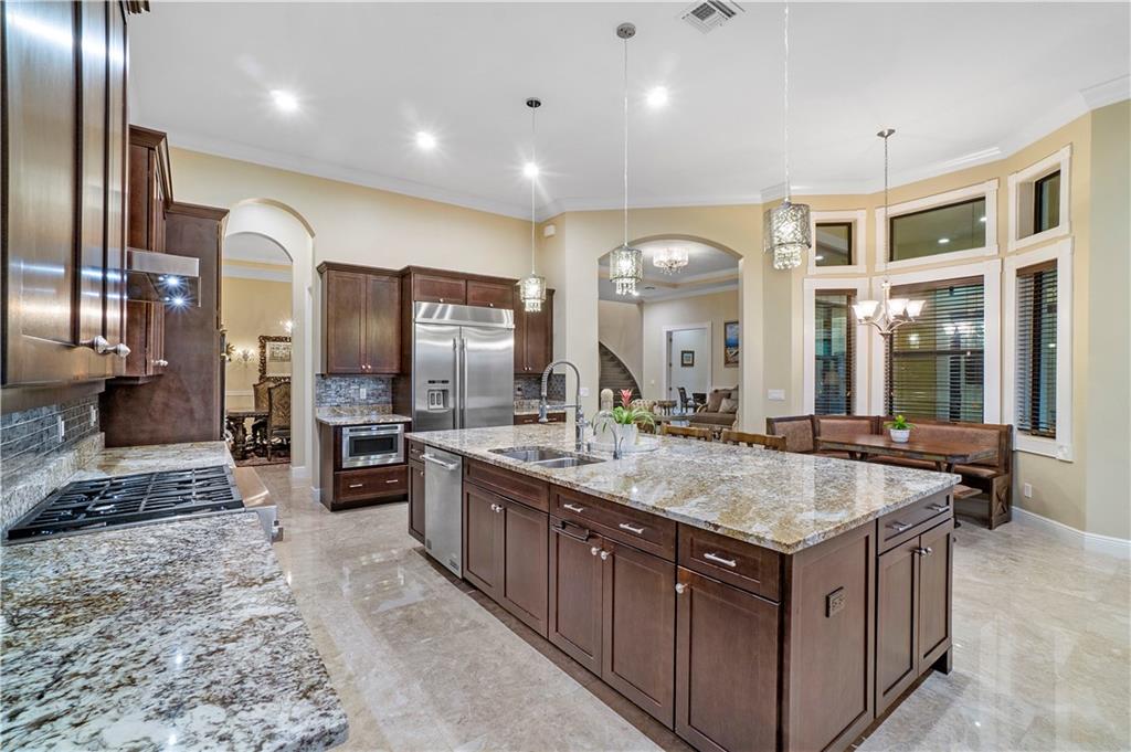 Spectacular estate home in Parkland Golf and CC. This home features marble floors throughout first floor and wood on second. 5 bedrooms, 5 full baths and 1 half baths. Kitchen offers large cooking center island, Jenn aire appliances with 6 burner gas stove, double ovens and sub zero refrigerator. One bedroom suite on first floor, game room and office. Decorative stone wall in family room and crown molding throughout. 4 bedrooms upstairs plus loft with built in study, large master bedroom with 2 built in his and her closets. Master bath has separate Jacuzzi tub and shower. Enjoy the backyard with your infinity pool, fire pits and summer kitchen. Pool has swim up bar with built in seating. 8 speaker system and outdoor cameras stay. Full house generator. Impact Glass.