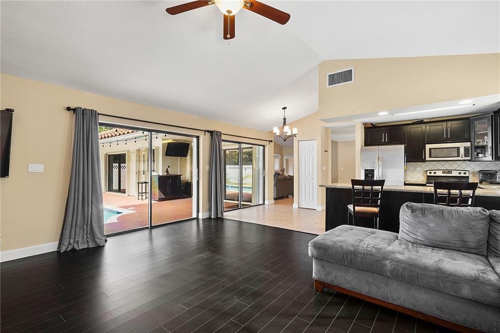 Nestled on a quiet street in the Crossings of Coral Springs, This spacious 4 bedroom updated pool home is move-in-ready! Tiled throughout with Vaulted ceilings, the open floor plan showcases the beautiful fully fenced and very private backyard as soon as you enter. Bright and airy, the open floor plan is perfect for entertaining family and friends. Your new home features Tile throughout, Updated wood kitchen cabinets, Granite counter tops, Stainless appliances, 2015 Tiled Roof and 2019 Accordion Hurricane shutters. Close to great shopping and schools and major highways Coral Springs is a great place to live.