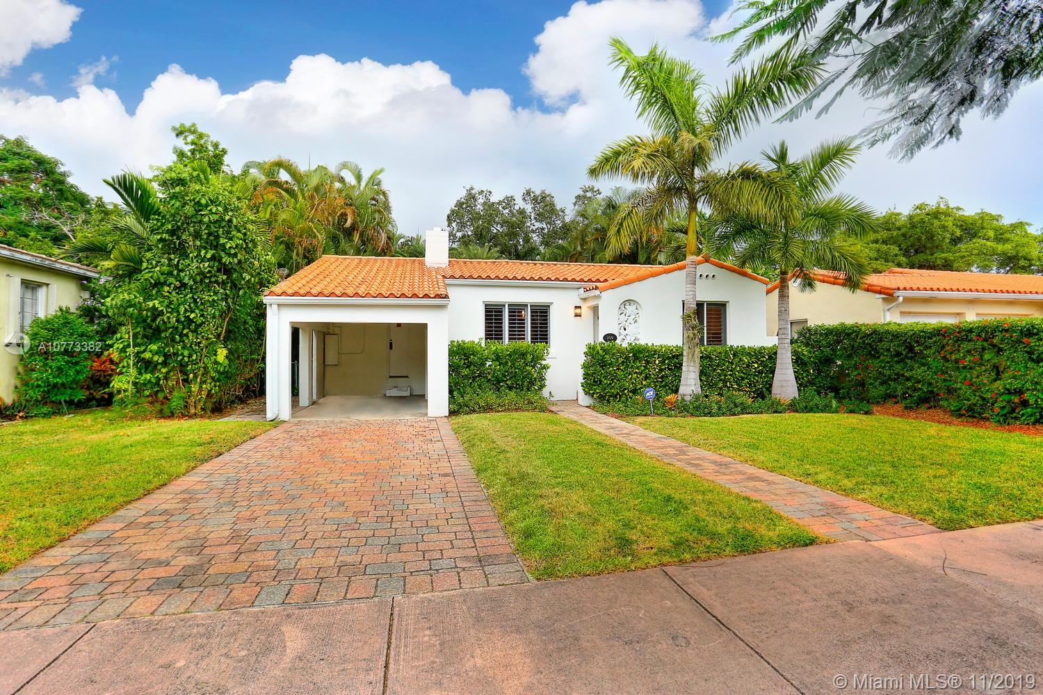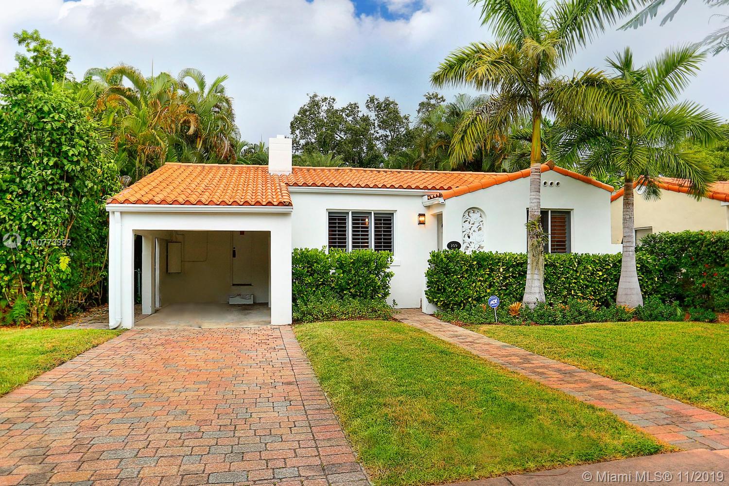 Enchanting mid-century style home in the heart of Coral Gables. Looking for a starter home? Or downsizing? This is the perfect home for you. Original fireplace and hard wood floors provide the cozy, warm homey feel. The large Florida room with lots of windows provides an abundance of natural light. Other features include: updated kitchen and bathroom, carport and a lovely backyard with plenty of space for a pool or an addition. This home is within walking distance to Ponce de Leon which provides access to the Coral Gables Trolley or grab an electric scooter and head over to Miracle mile! Like condo living but in a house!