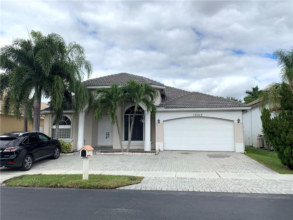 This stunning one story bright & open split bedroom floor plan. 4 beds, 2 baths, 2 car garage home with a big screen in patio, gourmet kitchen featuring granite counter tops, stainless steel refrigerator & plenty of storage. Master suite w/ spa styled bathroom, his/her sinks, free standing separate soaking tub shower, his/hers closets. Volume ceilings, foyer entry, tile floor throughout. security system, hurricane shutters, circular drive way. Gated community with low HOA.
