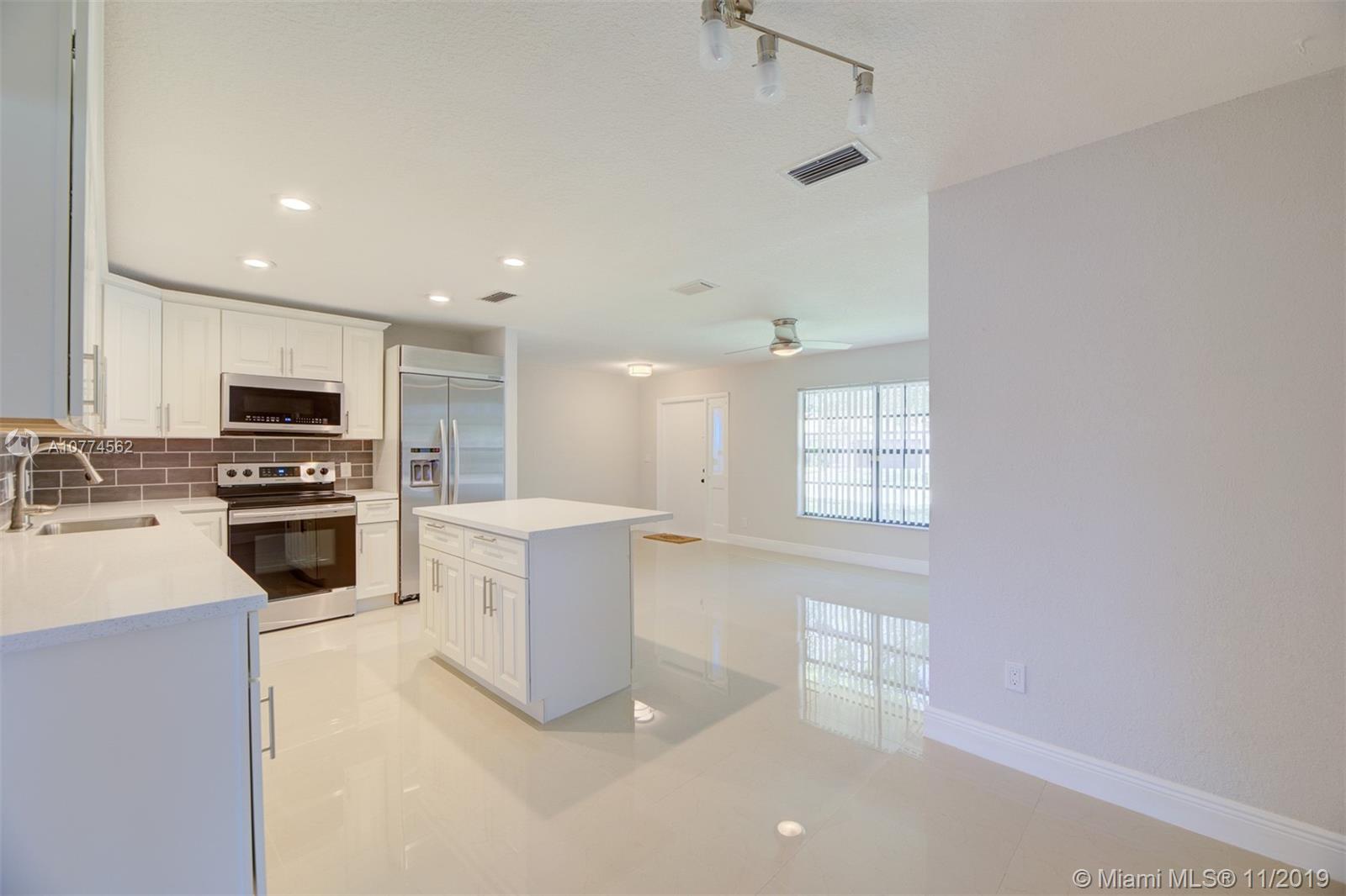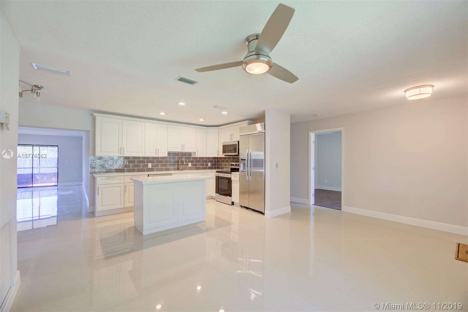 Gorgeous 4/2 open concept one car garage in the heart of Cooper City. A school district. Brand New Kitchen with quartz counter tops and brand new cabinets. S/S appliances Brand new. 20 inch brand new tiles and hard wood laminate floors throughout. Large baseboards throughout. Freshly painted inside and out. Corner home. Newer AC. Brand New Roof. Driveway was re done. New light fixtures. Brand New bathrooms with quartz vanities and glass shower doors. Screened in patio.