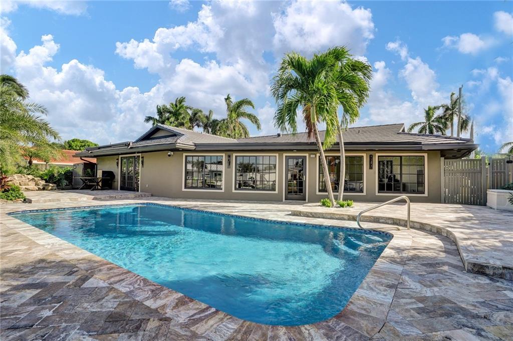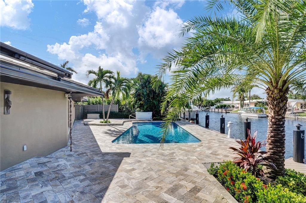 Boaters Paradise in highly desirable Harbor Village! Beautiful contemporary waterfront home! 3 Beds/2 Baths/Office. TOTALLY RENOVATED (with all permits) in 2018/19 with luxurious materials. NO FIXED BRIDGES, new 80 ft. of dock equipped with 200amp, water, and lightning to accommodate a very large boat. 2 car garage with tile floor, video camera system, heated pool, new expensive patio for outdoor tropical entertaining with new landscaping. Impact windows and doors, new roof, new floors throughout the house, new wood interior doors, Extenzo ceiling and so much more! Master bedroom features private bath, walk-in closet, and sliding glass doors to pool area. About 15 minutes to Hillsboro Inlet by boat. Minutes to the new Pompano Beach Pier shops and Beachfront restaurants.