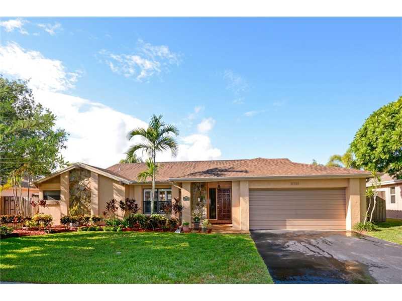 Meticulous home. Original owners. This Flamingo model with a split bedroom floor plan has been upgraded and updated through out the years. Kitchen boasts 42" cabinetry, pantry, granite counters and breakfast bar. The Family room is adjacent to the kitchen and both areas open to the covered patio and pool area perfect for entertaining. Both baths have been tastefully remodeled. The back yard has ample space for the kids to play. Located in the excellent Cooper City School district.