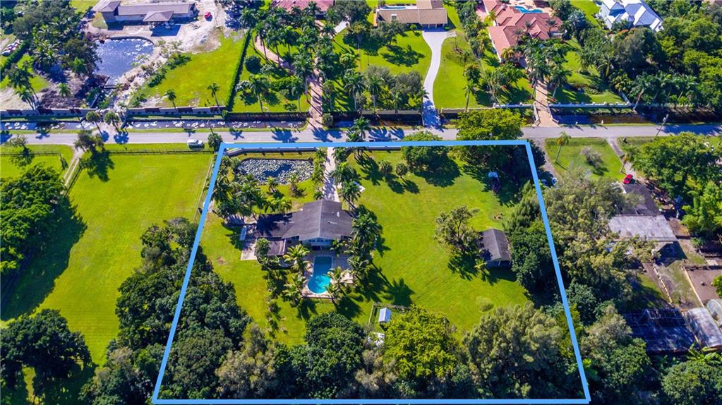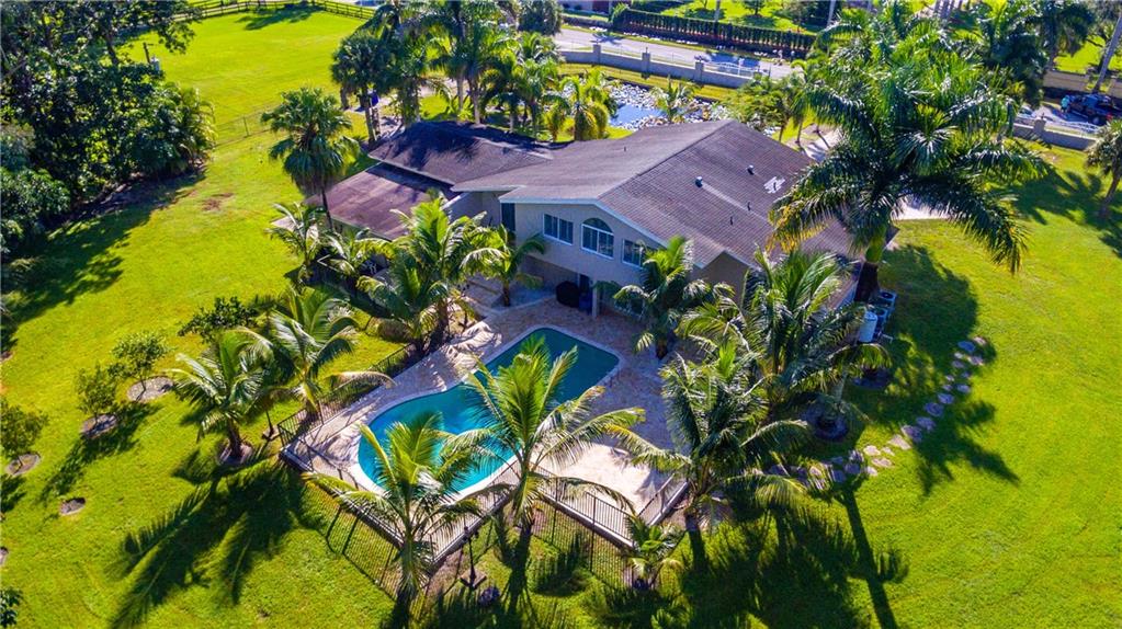 WONDERFULLY UPDATED, CHARMING FARM HOUSE ON A PREMIER STREET IN PRESTIGIOUS SUNSHINE RANCHES! PRIVATE ENTRY W/FRONT COLUMNS WRAPPED LEDGER-STONE, WROUGHT IRON FENCING AND ELECTRONIC GATE. NESTLED ON OVER 2 ACRES, THIS TRIPLE SPLIT FLOOR PLAN WHICH OFFERS 4 LARGE BEDROOMS+OFFICE/DEN, 3 FULL BATHS TOTALS OVER 5,300 SQFT. SEPARATE DETACHED 1 BEDROOM/1 BATH GUEST HOUSE (APPROX 621 SQFT). HUGE EAT-IN GOURMET KITCHEN WITH GRANITE COUNTER-TOPS, CENTER ISLAND AND STAINLESS STEEL APPLIANCE PACKAGE AND BEVERAGE COOLER. COMPLETED W/MARBLE FLOORS, IMPACT WINDOWS AND DOORS THROUGHOUT W/PLANTATION SHUTTERS. BRAND NEW REFINISHED POOL OVERLOOKING A SPACIOUS YARD...GOAT PEN AND CHICKEN COOP STAY!
