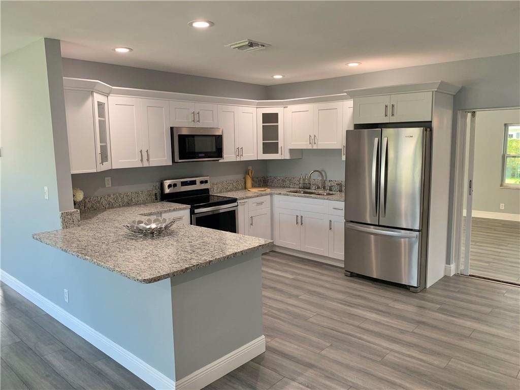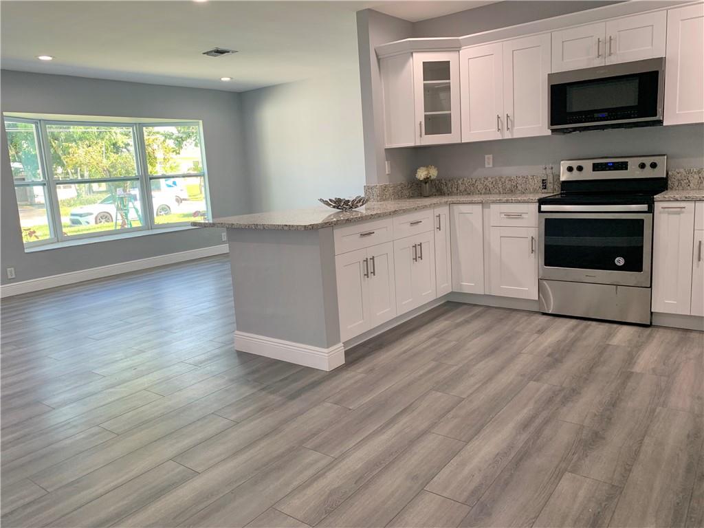 WELCOME HOME!! Enjoy living near EVERYTHING in your freshly remodeled 3 bedroom, 2 bathroom, 2 car garage home in Plantation!! Contemporary open design with modern accents, waterproof plank flooring, tall baseboards and cool, soothing, neutral tones throughout entire home. Amazing new kitchen boasts stone countertops, wood shaker cabinetry, crown molding, stainless steel appliances and under-mount sink. Bathrooms elegantly done with new fixtures, lighting, vanities, tile flooring, tile bathing areas and glass master shower. 3 hall closets! Huge great room leads to expansive yard with plenty of space to entertain, play or build a pool. All under new central AC, energy-saving double pane windows, recessed lighting, water heater, motorized garage door, 2012 roof, updated electric and more!!!