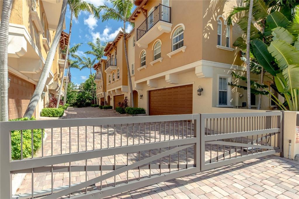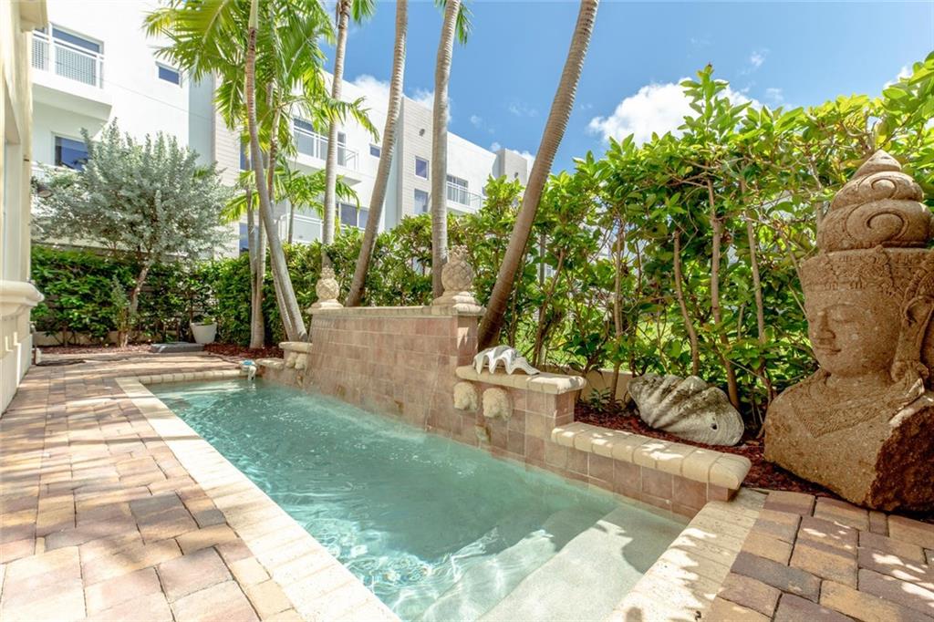 Rarely available gated 4/3.5, 2CG townhouse with elevator & a private pool w/ fountain. Sitting directly between the ICW and ocean, 6 homes in a private ocean-side community of Ocean Enclave. A few steps to the sand & everything at your fingertips to enjoy a South Florida lifestyle to the fullest. This shabby chic decorated home features an entry level private guest suite/den/pool cabana room/in-law suite with full bath, mini frig/wet bar and media area. Offering an elegant wood staircase or take your private elevator to make your way up to the 2nd floor huge open social area and gourmet kitchen. On the 3rd floor you will find a nicely sized 19x14 master bedroom w/ his and her closets, jacuzzi tub, shower and dual vanity. 2-bed / full bathtub/shower combo down the hall.