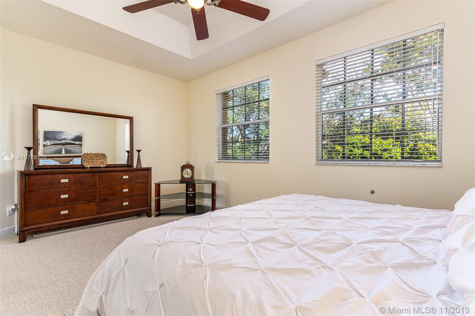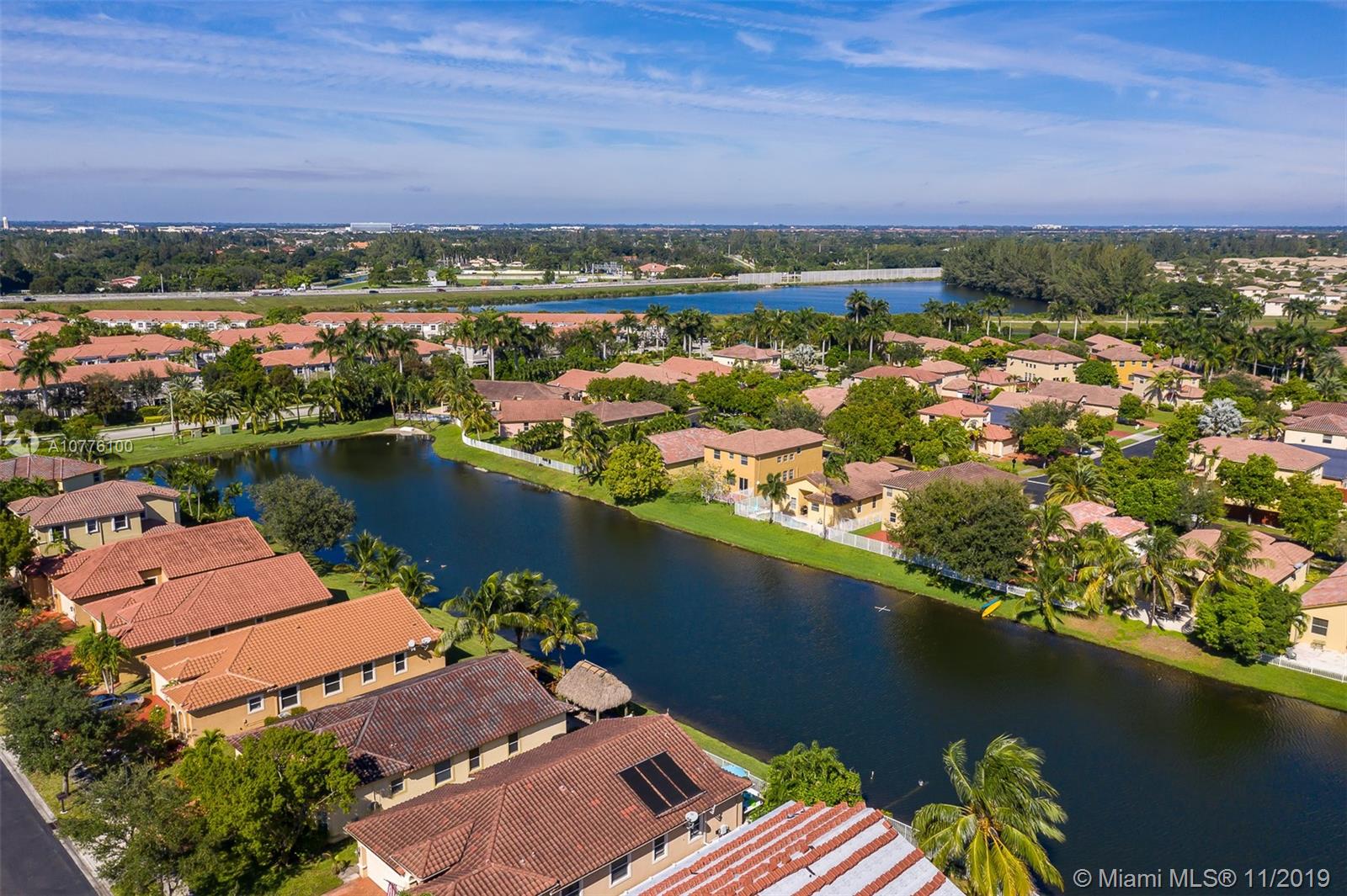 Stunning views in highly sought-after Santorini Estates in Vizcaya with resort style pool and amenities! Incredible waterfront property with volume ceilings and lots of windows for natural lighting! Beautiful granite counter tops in kitchen with stool seating area for family enjoyment. Oversize master bedroom with whirlpool tub, dual sinks and separate shower. Formal dining area with family room and living room overlooking the water. Perfectly located close to all major highways for access to anywhere. Backyard can be expanded and pool added. Enjoy the beautiful sunrise and sunsets while overlooking the water.