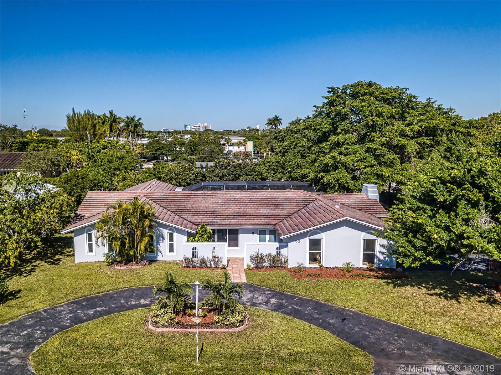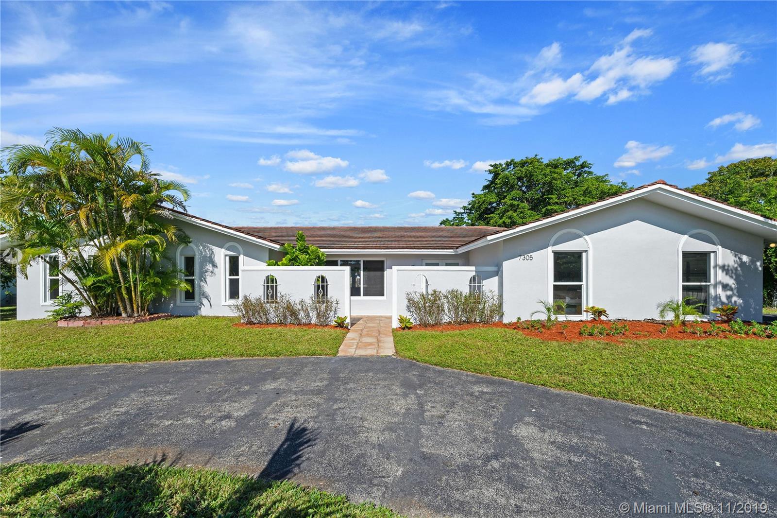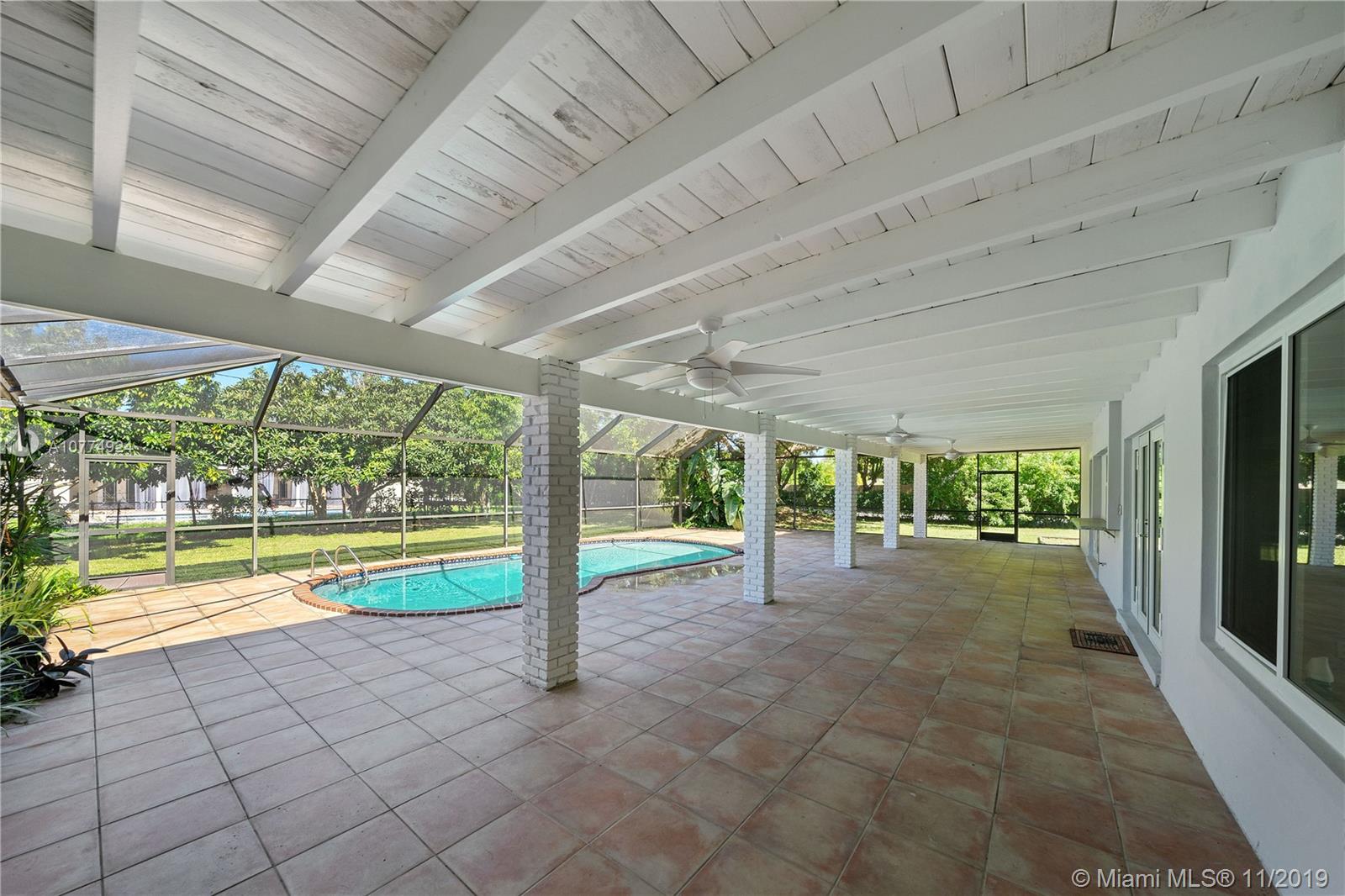 5 bedroom totally remodeled 2018-2019, 1-story interior corner residence in Pinecrest on Builder's 1/2 acre with private pool and screened patio. Huge covered terrace, impact windows & doors. New modern bathrooms, white kitchen wood cabinets w/granite counters and stainless steel appliances. 2014 Trane A/C. Freshly painted interior & exterior. Flat tile roof 2006. Large family room with fireplace. New bedroom flooring, porcelain & tile floors. New ADT alarm system & sky bell. Large yard- plenty of space! No Homeowners Association. Spacious garage!