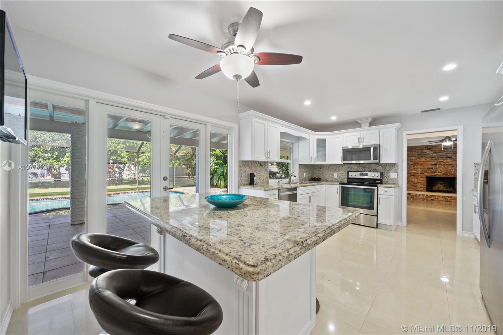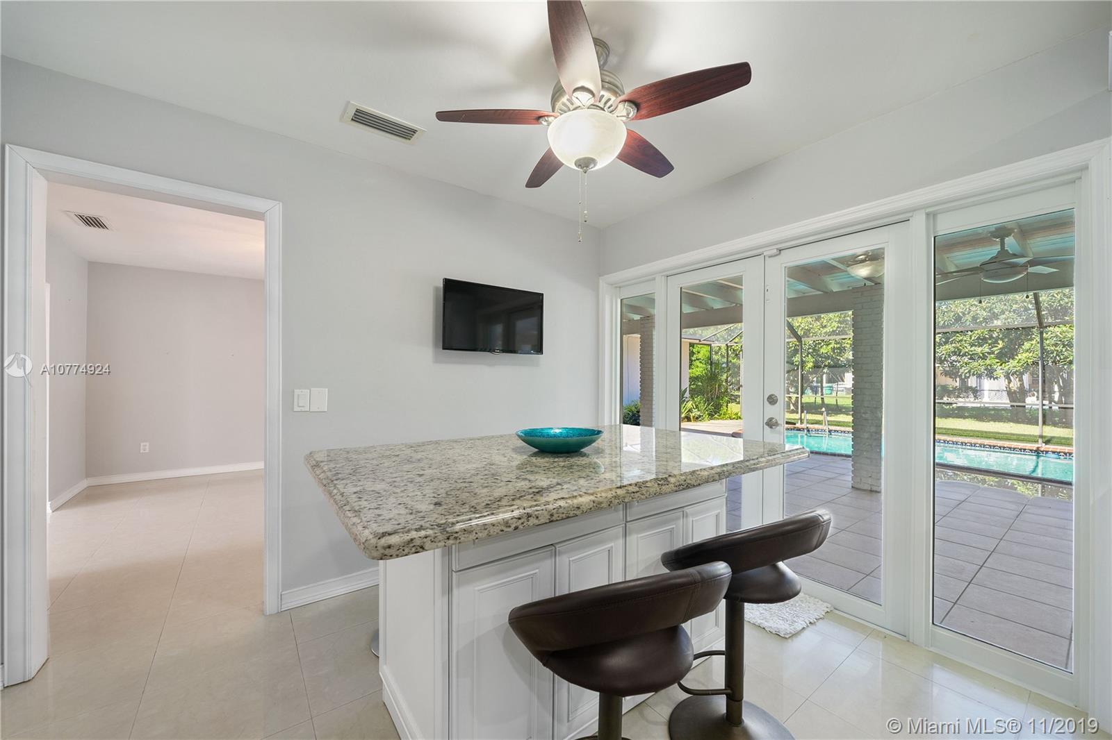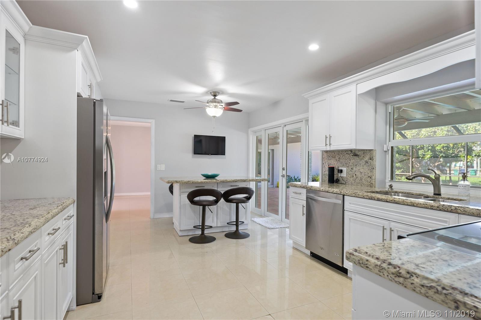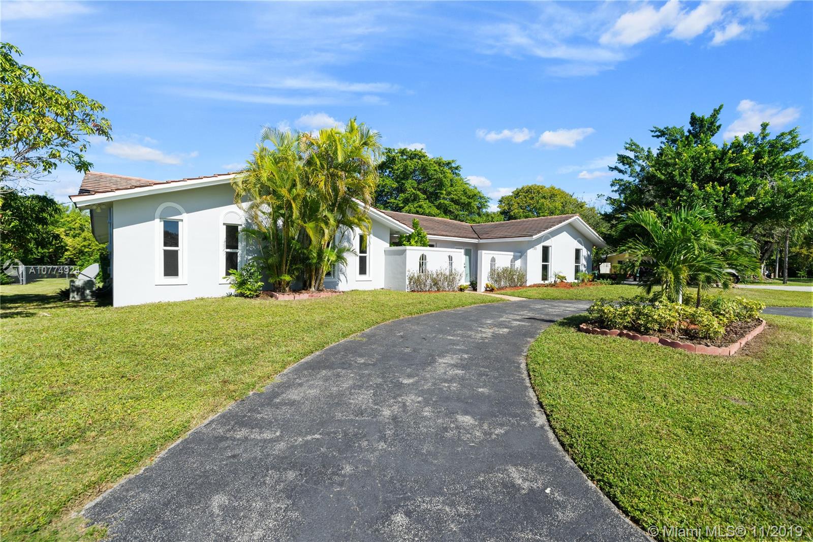 5 bedroom totally remodeled 2018-2019, 1-story interior corner residence in Pinecrest on Builder's 1/2 acre with private pool and screened patio. Huge covered terrace, impact windows & doors. New modern bathrooms, white kitchen wood cabinets w/granite counters and stainless steel appliances. 2014 Trane A/C. Freshly painted interior & exterior. Flat tile roof 2006. Large family room with fireplace. New bedroom flooring, porcelain & tile floors. New ADT alarm system & sky bell. Large yard- plenty of space! No Homeowners Association. Spacious garage!