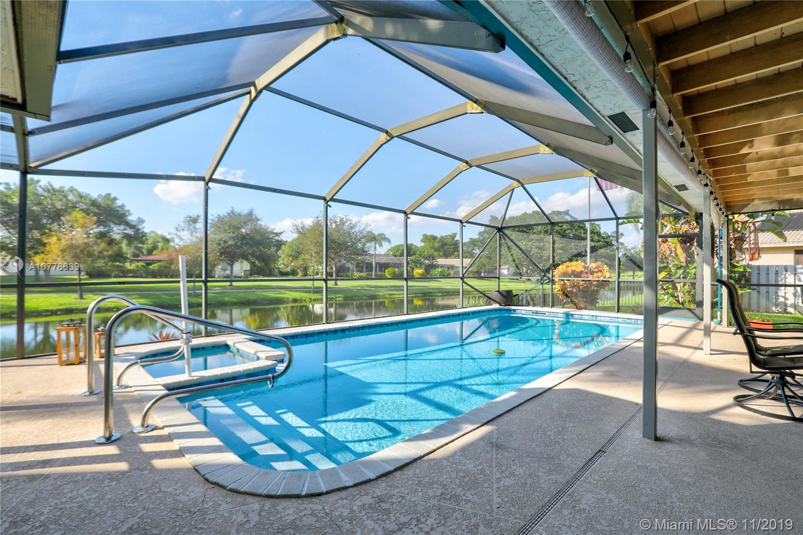 Immaculate Move in condition in the heart of PLANTATION's JACARANDA LAKES. Open and spacious one-story home featuring 3 bedrooms and 2 baths, vaulted ceilings and open floor plan. Relax in the serene backyard with screened in pool w/jacuzzi. Overlooking the best view of the lake which allows for an incredible breeze all year round. Oh, and did I forget to mention the impact windows.