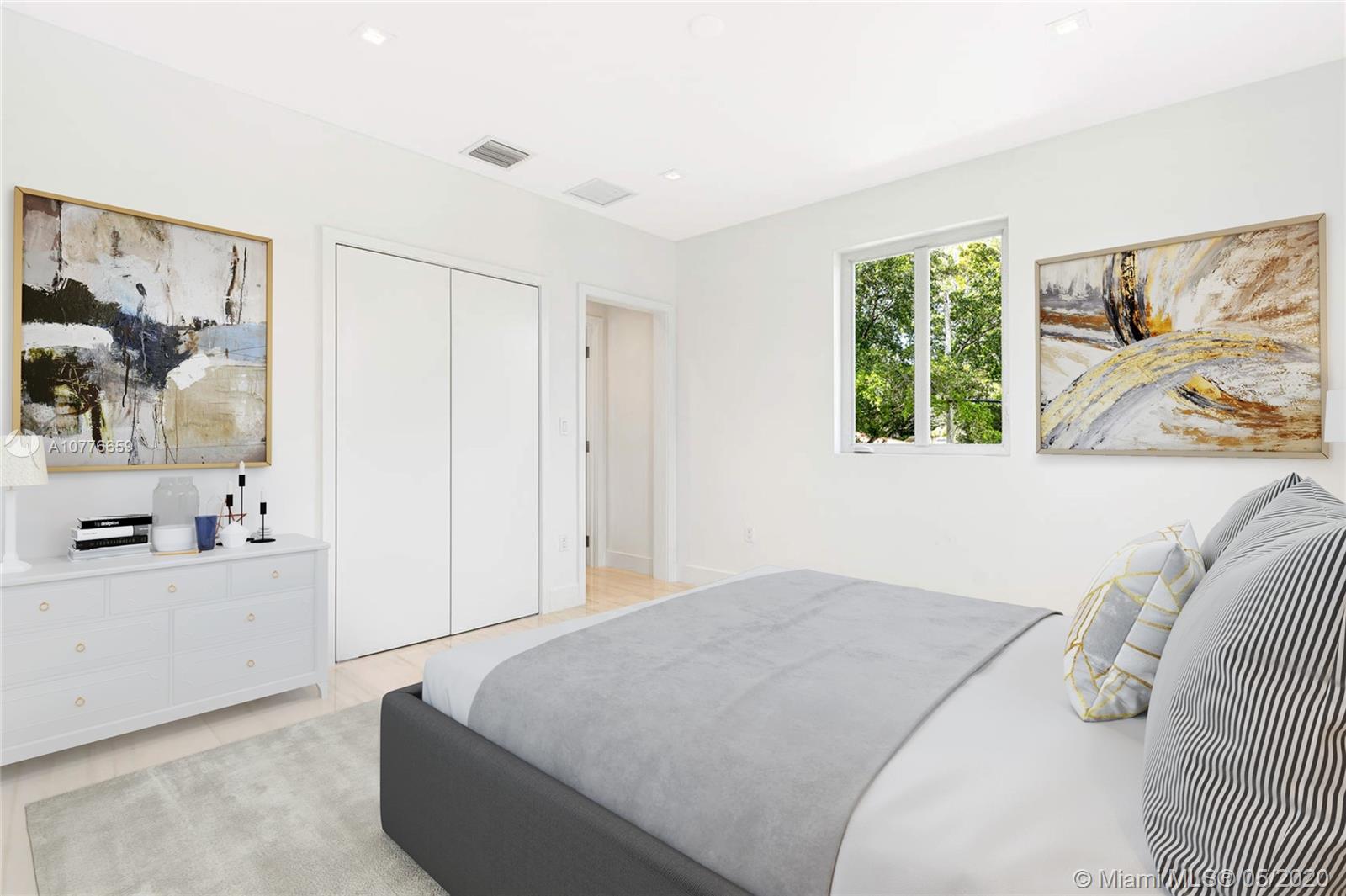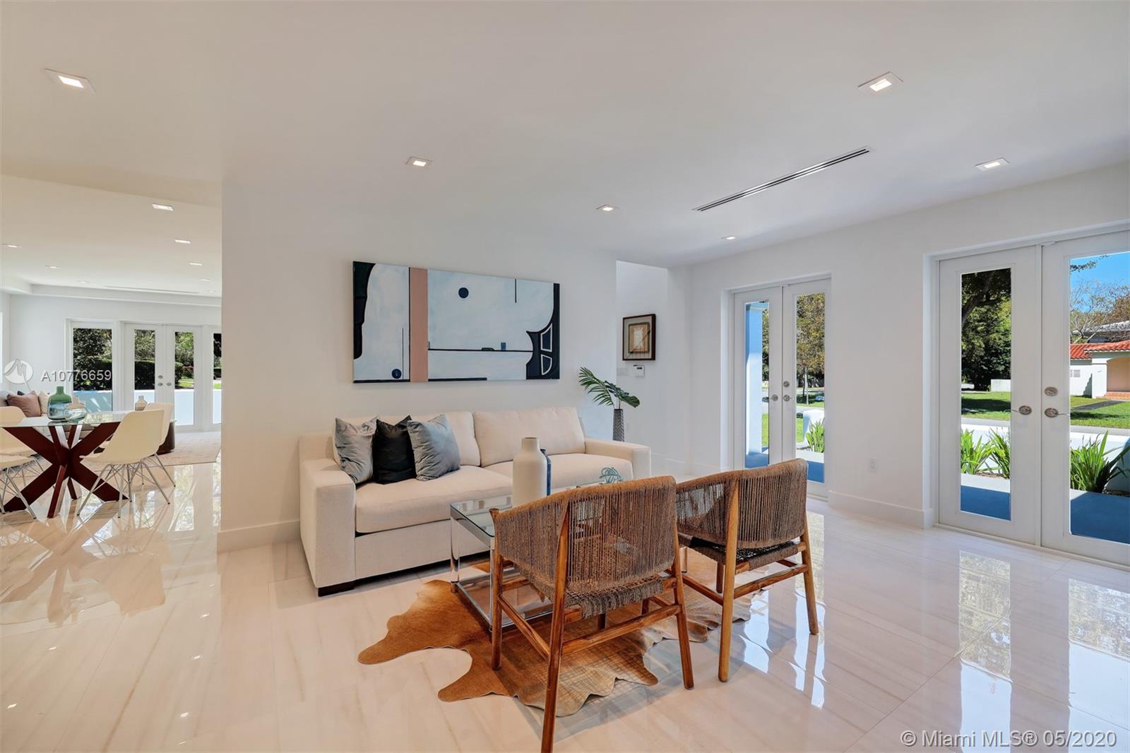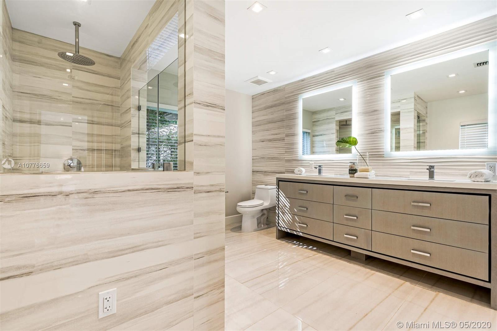 Modern meets traditional in this completely renovated from the ground up home. With 4 bed 4.5 baths, this house features everything you've been looking for. 3,098 total sqft of which more than 2,300 SF is added NEW construction completed in Nov 2019. Walk in to an impressive 30ft high ceiling atrium, oversized Italian porcelain tiles & recessed lighting throughout; chef kitchen with gas stovetop, quartz countertops & backsplash, grand white marble stairs, smart home wiring, impact windows, 1 car garage, and 2 paved driveways. Master bedroom with his & hers closet, dual sink, and rain shower head, and guest bedroom on first level. Patio with pergolas, lush landscaping & warm lighting all around. One-year Biltmore Hotel Health & Fitness membership gifted.