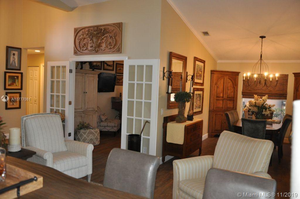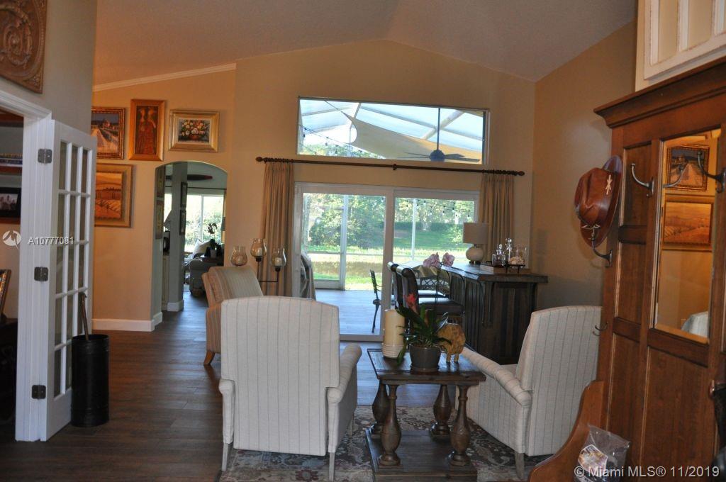 Beautiful 4 bedroom house with serene water views! Totallyrenovated granite kitchen! HUGE screened patio, Great for entertaining, Overlooking the water. Roof only 9 years old. Accordion hurricane shutters throughout. French doors into the 4th bedroom that is currently used as a den. Separate dining room. Home totally renovated 2 years ago!! New bathrooms, floors, Impact windows (partial), LED lighting throughout, A/C 4 years old, Closets with built-ins. Wonderful house to call home in a great community! This home is move in ready with no work or repairs needed. Guard Gated Community, With A Lovely Community Pool And Park Area. Quiet, Spacious And Completely Renovated. A MUST SEE !!