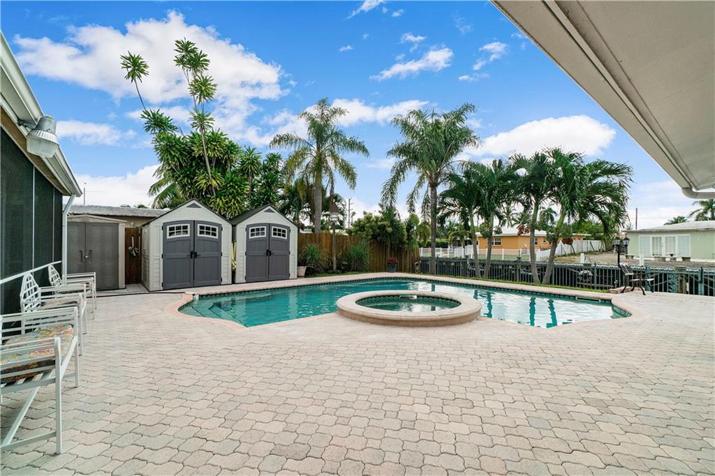 Waterfront home with ocean access for under $500,000! Bring your boat to this beautiful 3/2 pool home. Dock your boat in your own backyard, enjoy the upgraded Trex dock, jet ski lift and beautiful, peaceful backyard. This home was made for entertaining with 4 sliders to backyard with large screened patio, oversized pool and spa, 2 large storage sheds! Inside you will find an upgraded kitchen with a gas range and stainless steel appliances, split bedroom plan, wood and tile floors, no carpet! Whole house generator. Attached carport could easily be converted to a garage or additional living space, circular driveway, no HOA. Great location on a low traffic cul de sac street. Original roof needs replacement. Reflected in reduced price.