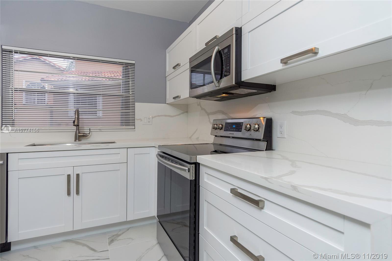 Beautiful remodeled Townhome, 3 beds/2.5 baths with double car garage converted. Porcelain 24x48 through living areas and laminate wood floors in the second floor. Kitchen with Quartz Counter Top and New Stainless Steel Appliances. Double Vanities in the Master Bathroom and Panel Tower System with Rainfall Shower, Hurricane Shutters and much more....Come see it!!!!