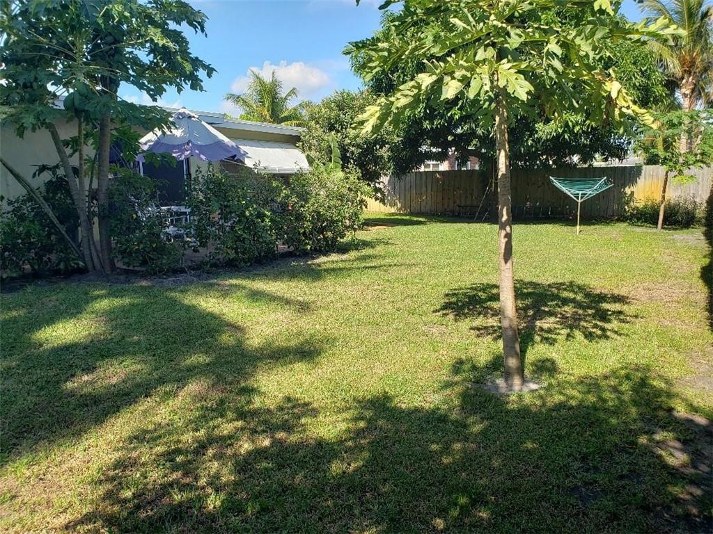 3 bedroom 2 baths, mature fruit trees, A rated schools, beaches few miles away, florida room, laundry room, 2 car garage, fenced in yard with total privacy, mature mango, avocado, papayas and banana trees. Very large master bedroom with sitting area, second and third bedrooms also large, great florida room used for television, large family room , and dining area. This home has it all at a great price. Quiet safe neighborhood, with no traffic. Yard has a nice patio surrounded by the tropical trees with shade. Large 2 car garage, with newer A/C unit, and beautiful ceramic floors. Only a few miles from beaches, Federal Highway with all the restaurants, and social scene south Florida has to offer. No HOA's, no restrictions, or parking issues....DELICIOUS.