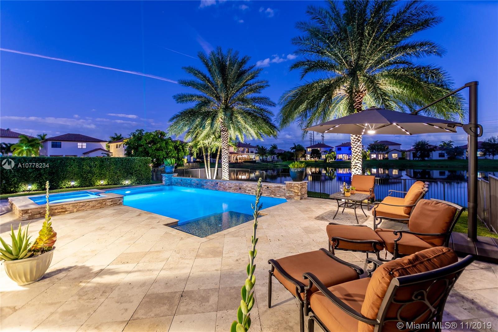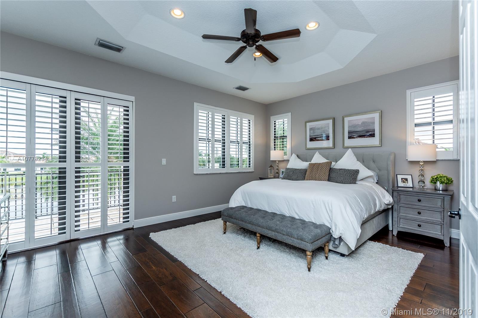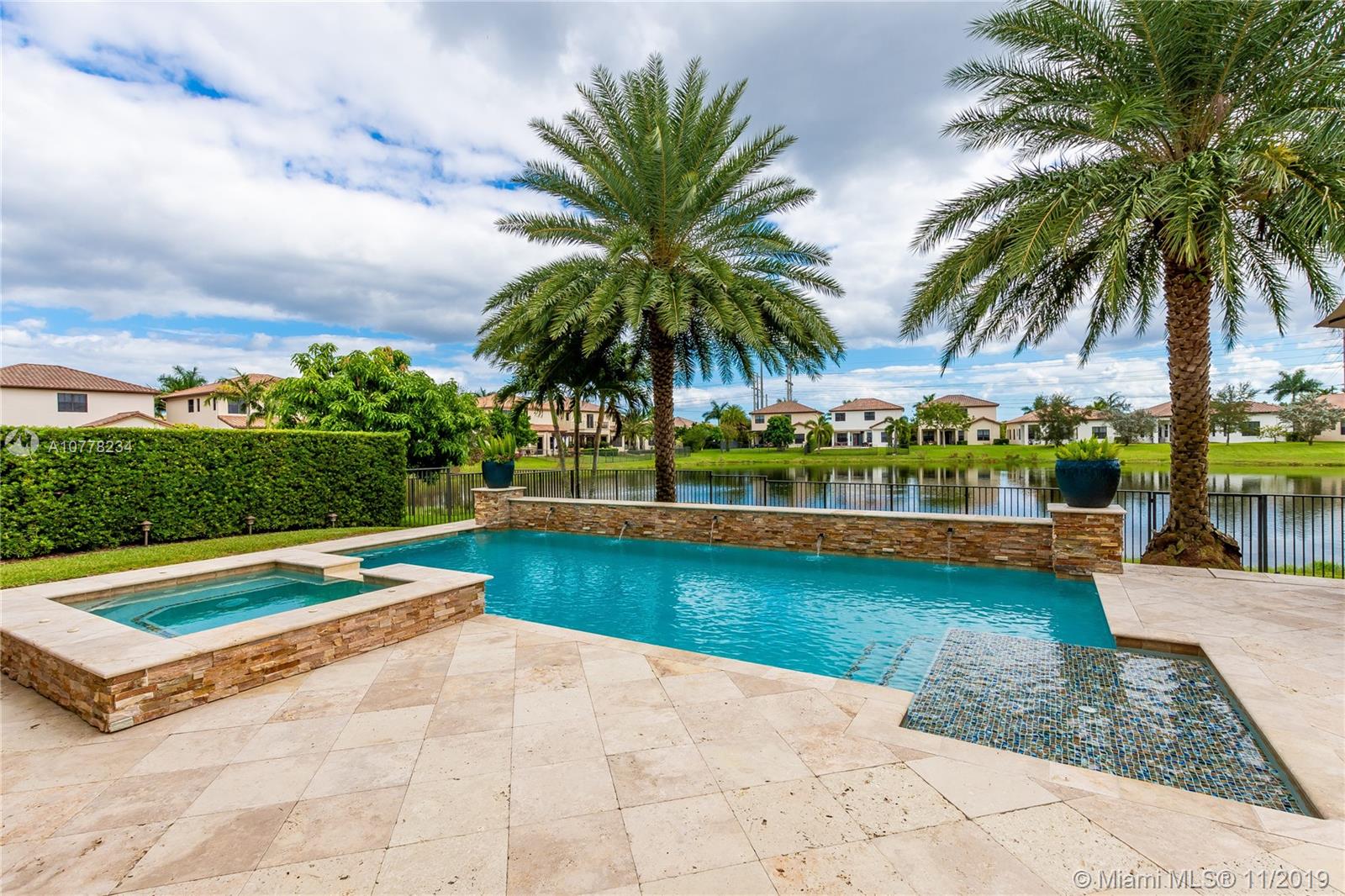 Gorgeous Lakefront home with pool! This highly upgraded Tortuga model features 4 spacious bedrooms and 3 full bathrooms plus comfortable Loft area! The house boasts high ceilings and marble and wood flooring. The backyard is an outdoor tropical oasis highlighted by a custom heated swimming pool and hot tub, situated on a spacious and private lot. Additional upgrades include impact windows, wired surround sounds in living area and outdoors, wine fridge and tailor made cabinetry in dining room area, Plantation shutters and much more! Located in the guard gated community of Monterra, the community offers resort style amenities including Fitness Center, Tennis and Basketball Courts, Tot Lot and Dog Park. A+ schools and close to FLL and Miami airport.