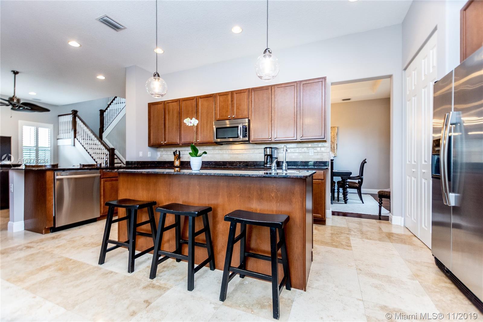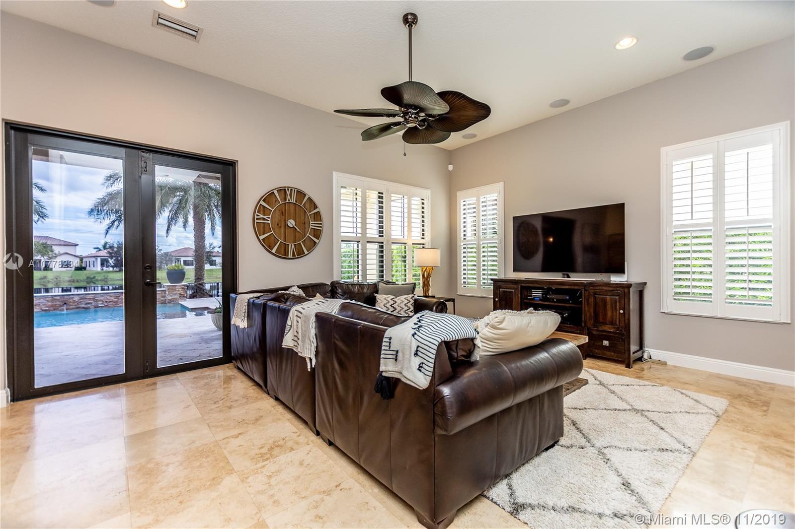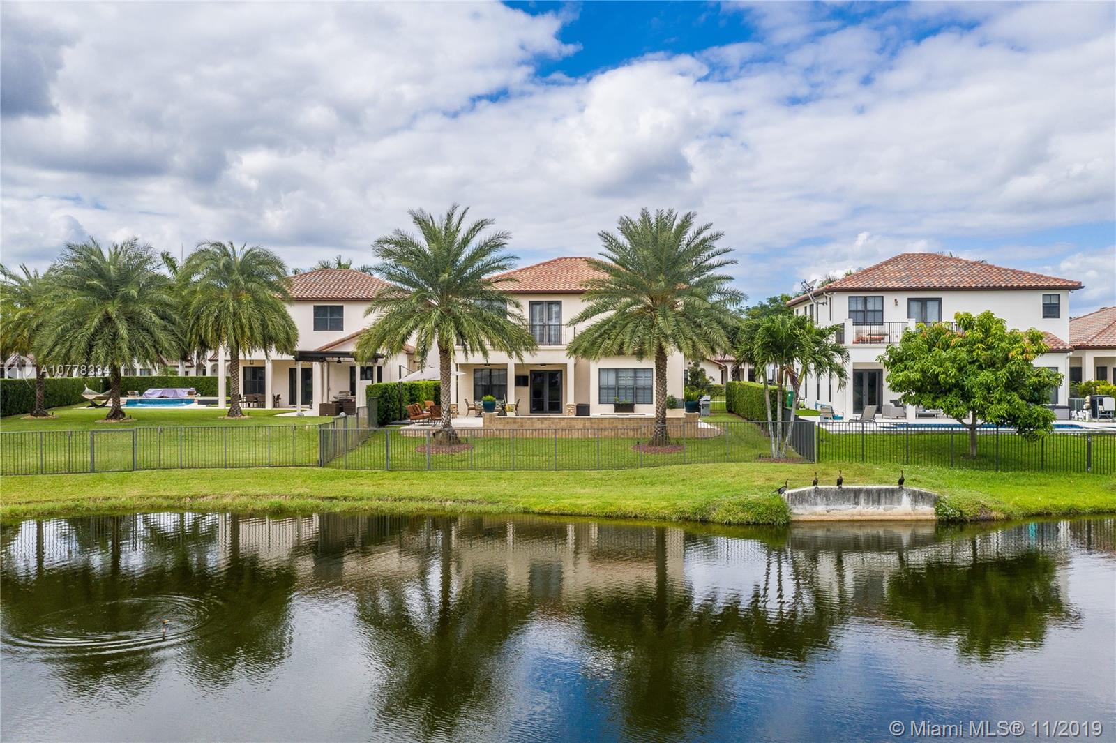 Gorgeous Lakefront home with pool! This highly upgraded Tortuga model features 4 spacious bedrooms and 3 full bathrooms plus comfortable Loft area! The house boasts high ceilings and marble and wood flooring. The backyard is an outdoor tropical oasis highlighted by a custom heated swimming pool and hot tub, situated on a spacious and private lot. Additional upgrades include impact windows, wired surround sounds in living area and outdoors, wine fridge and tailor made cabinetry in dining room area, Plantation shutters and much more! Located in the guard gated community of Monterra, the community offers resort style amenities including Fitness Center, Tennis and Basketball Courts, Tot Lot and Dog Park. A+ schools and close to FLL and Miami airport.