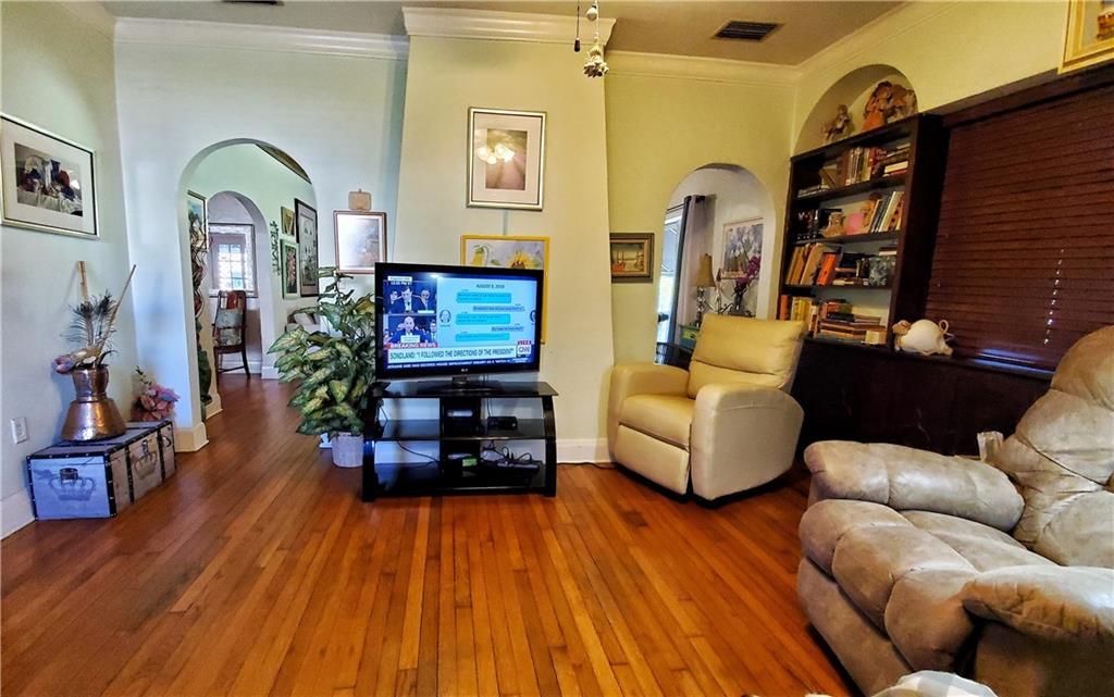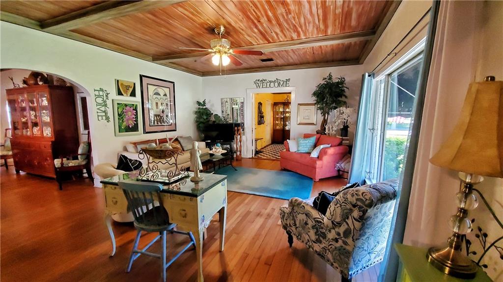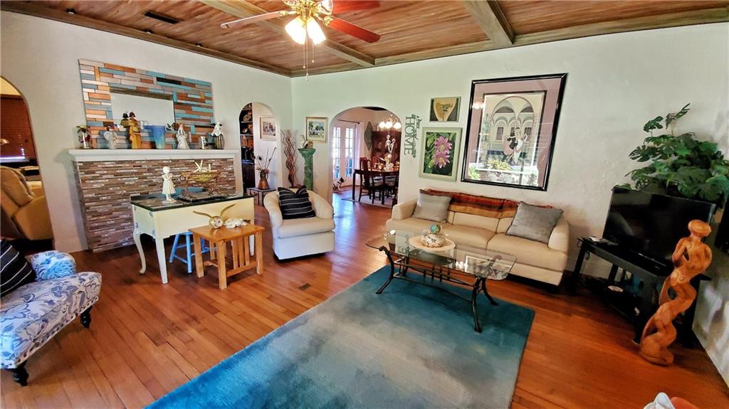 Welcome to the fantastical 1924 Wallace Robinson Home. A main house, guest house & efficiency workshop with over 3600 sf & 4 bdrms, 3 baths in all. A manicured corner lot jewel of a home sitting on over 1/3 acre. The architectural style is an Exotic Moorish Revival motif believed to be fashioned after the famous literary works of "1001 Arabian Nights". See 1/2 round windows, parapet roof, and a dome entrance. Enterance with original marble floors, heavy stucco walls, original doors & knobs, original french doors & 1920's built in cabinetry. Beautiful mighty red oak wood floors and wood ceilings flow through many of the rooms in this home. A serene escape awaits you with this centerpiece decorated fireplace, pool & jet tub, Koi fish ponds, fire pit seating area, and gardens to unwind to.