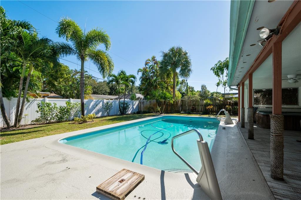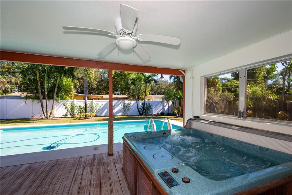 Get the best of both worlds--a historic-Plantation home with open floorplan and a beautifully updated interior. Kitchen features a gas range with overhead extractor, stainless appliances, and loads of storage. Wood flooring throughout the house is very inviting. Loads of built-in storage. Roof installed in 2015. Air conditioner is 2 years old. Gas water heater and dryer. Backyard retreat features large, covered patio, hot tub, sparkling pool, large lawn space, mango tree, work shed, and fencing all around. Side yard is big enough for a boat or RV. This is a great neighborhood for walking, running, and bicycling with a rich tree canopy overhead. The library and Plantation Historic Society are nearby. And the turnpike entrance is only 10 minutes away.