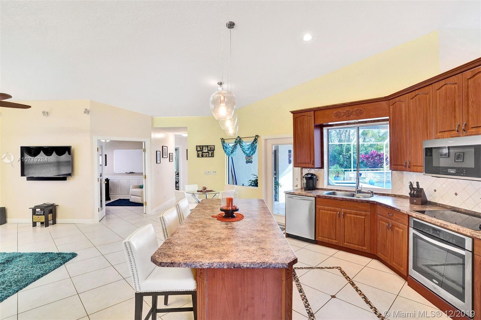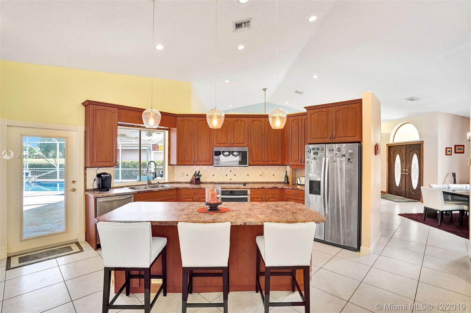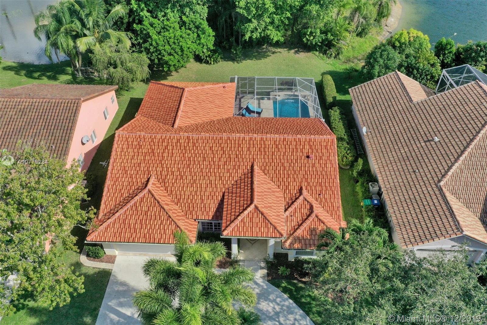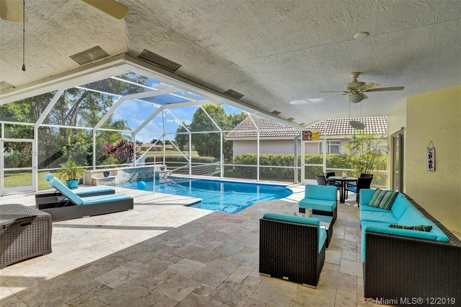 THIS IS A MUST SEE !! 3 bedrooms + den/office; Newly painted inside & outside; open-concept, split-bedroom bright & airy home w/24-hour guarded gate & low HOA fee. Loads of features & upgrades; brand new roof in 2019; Pariadise back yard w/ newly resurfaced, re-tiled & travertine-paved ; In-ground HEATED SALT POOL w/waterfall, e-efficient variable-spd pump; Newer lighting fixtures; 2nd bathroom completely remodeled; den/office w/ new wainscoting & crown molding; large master suite w/ 2 walk-in custom closets; full hurricane protection w/hurricane-rated garage door. Newer all stainless steel appliances in kitchen. Laundry w/ cabinets & sink / washer & dryer. 2-stage AC for quiet unit. Sprinklers draw water from the lake, Manicured landscaping; Come see this wonderful home! IT WONT LAST!!