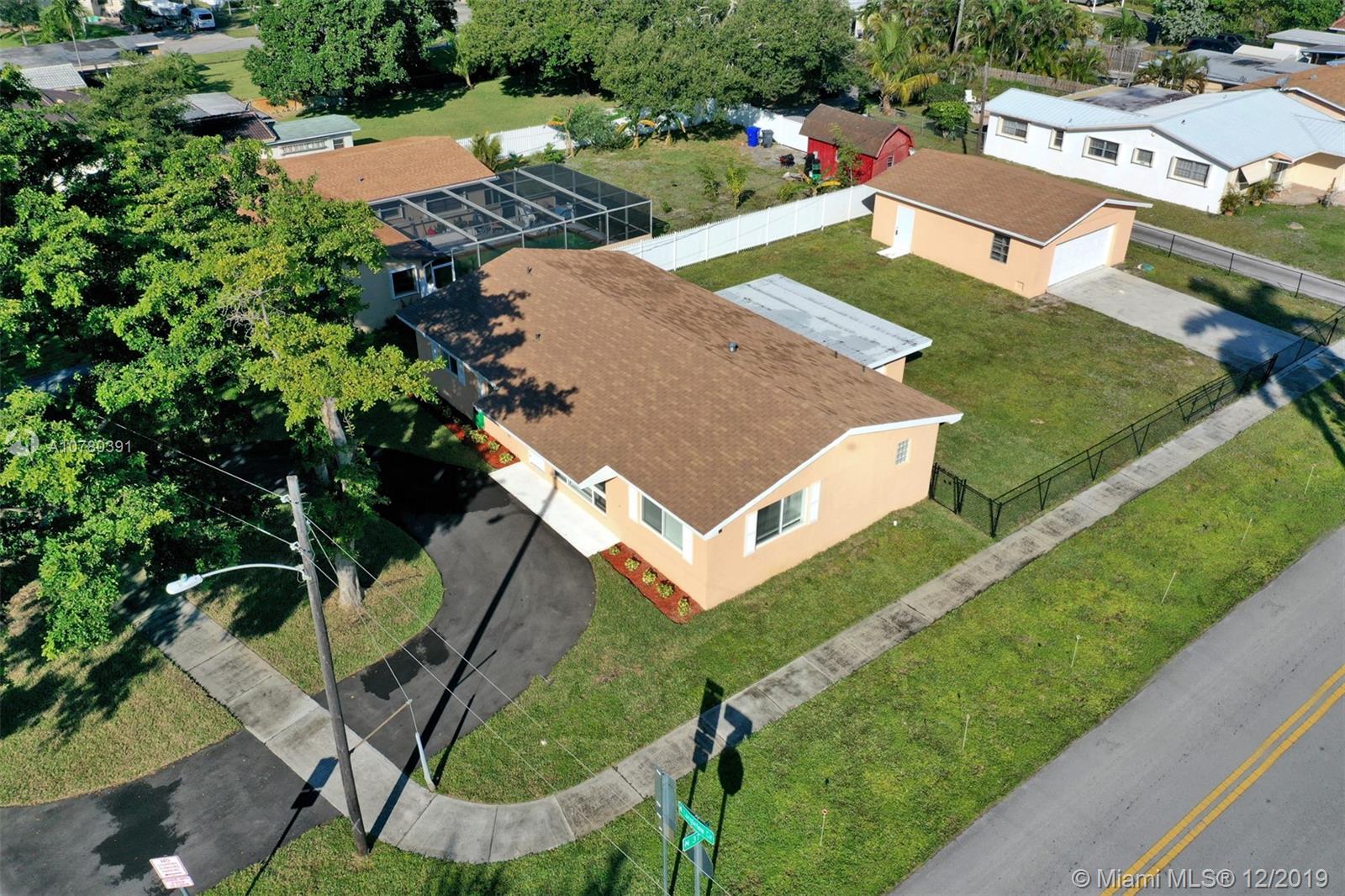 COMPLETELY RENOVATED & bursting with class. 1748 sqft under air with a brand new Roof, Hurricane Windows, new Kitchen/Baths, SS Appliances, new Central A/C, Porcelain Tile, & Ceiling Fans. This open concept home has room for a 3rd bathroom to create a 2nd master. The over-sized corner lot boasts a fenced yard big enough to add a pool & has automatic well fed sprinklers. The detached free standing CBS block garage adds an additional 550 sqft of space, has it's own separate driveway and provides many options for any type of use. Across the street is a park with exercise path, playground, volleyball, basketball, baseball & other sports. Walk to schools, minutes to Farmers Market, Shopping, Beaches, Margaritaville, Hard Rock Casino & Major Highways. Seller Motivated, make an offer!