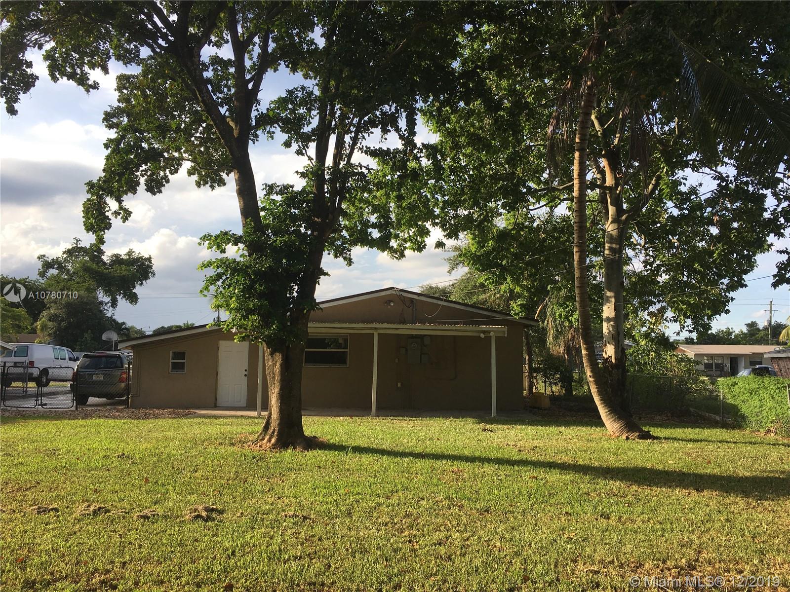 Great investment for first time home buyers or investors. 3 beds and 2 baths, 1,123 sq/ft of living space with tile floors throughout. Nice and bright open kitchen with stainless appliances. This house sits on a huge lot on a quiet cul de sac street. House has storm windows with high impact glass, huge driveway big enough for many cars, boat, RV and all your toys. Great location in the heart of Davie! Close to shops, highway and airport. There is also a shed in the back for additional storage. Fenced in yard with mature trees.