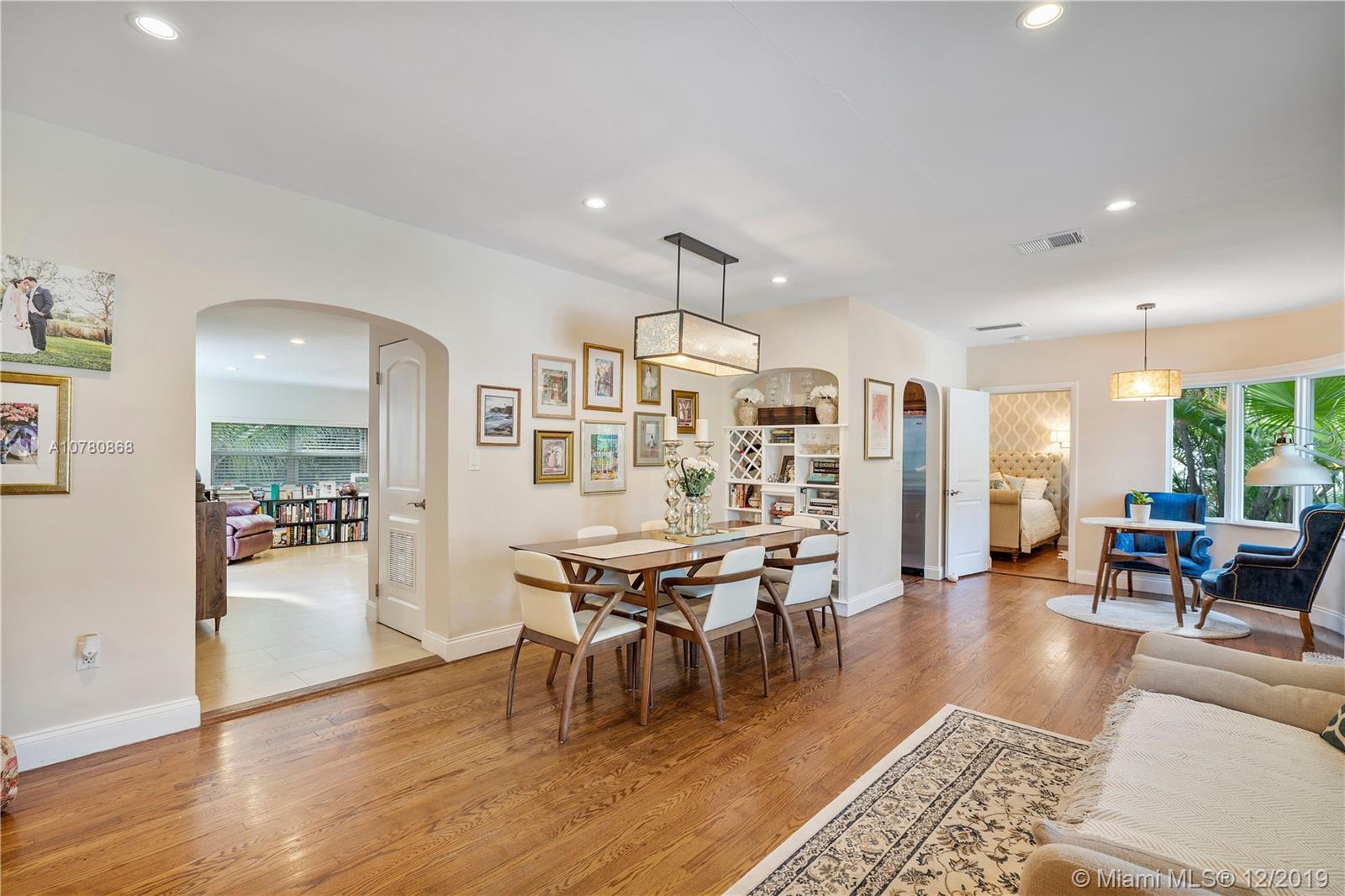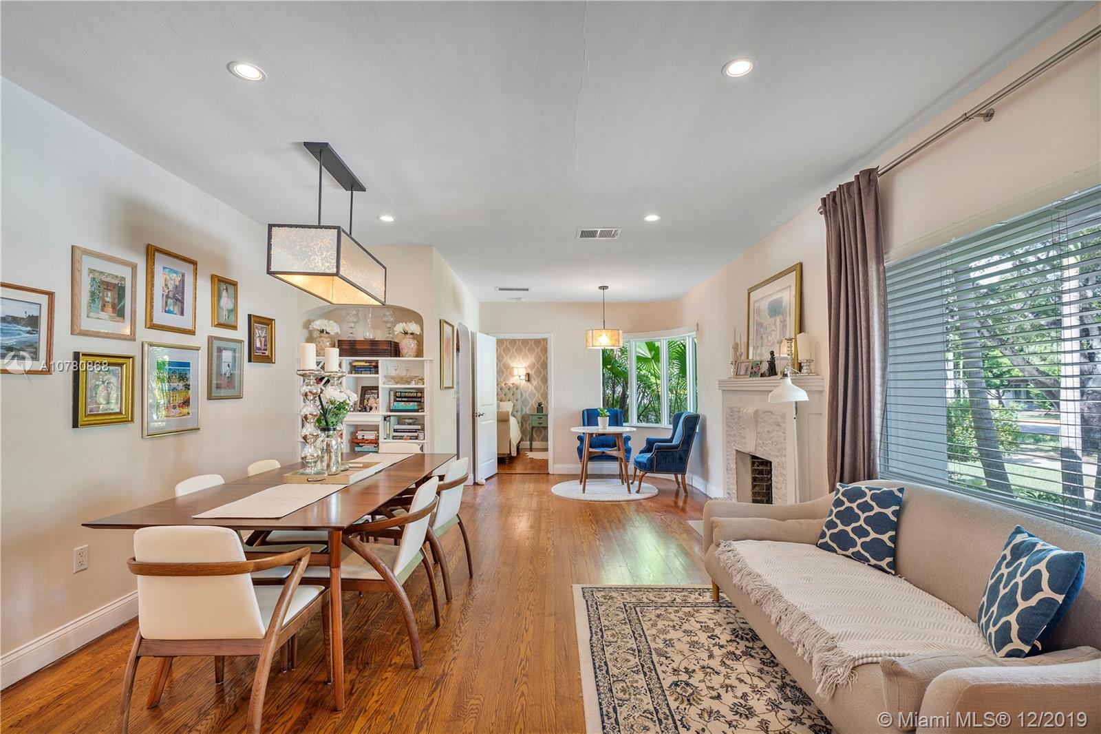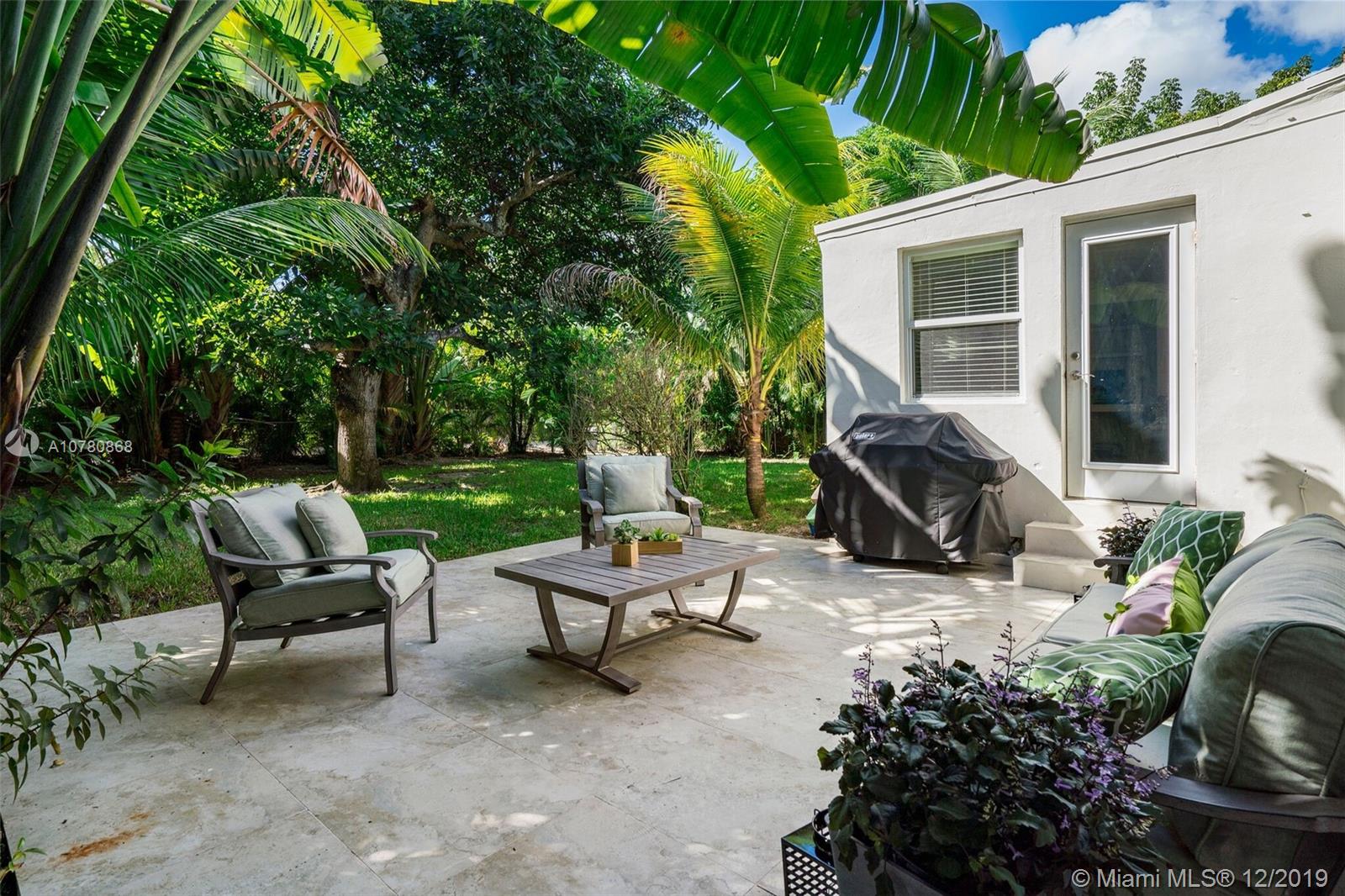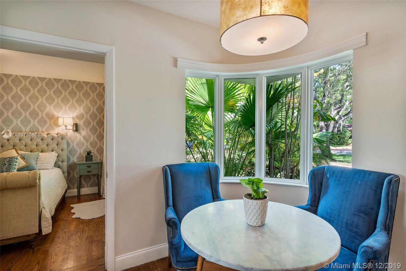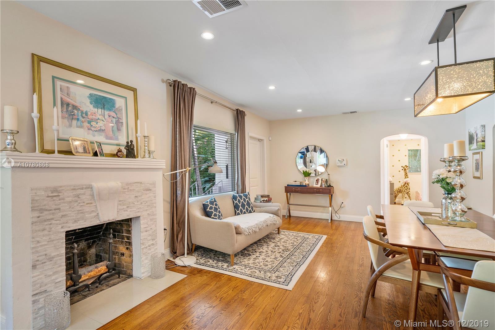Tastefully updated Art Deco home in Miami Shores. Many special features include: Stylish kitchen and baths, hurricane impact resistant windows & a beautiful fireplace. Wood and tile flooring. Split bedroom plan with 3 bedrooms and 2 baths. Family room overlooking tropically landscaped backyard fenced for privacy with a patio perfect for entertaining and enjoying the outdoors. Large lot with circular drive and room for pool.