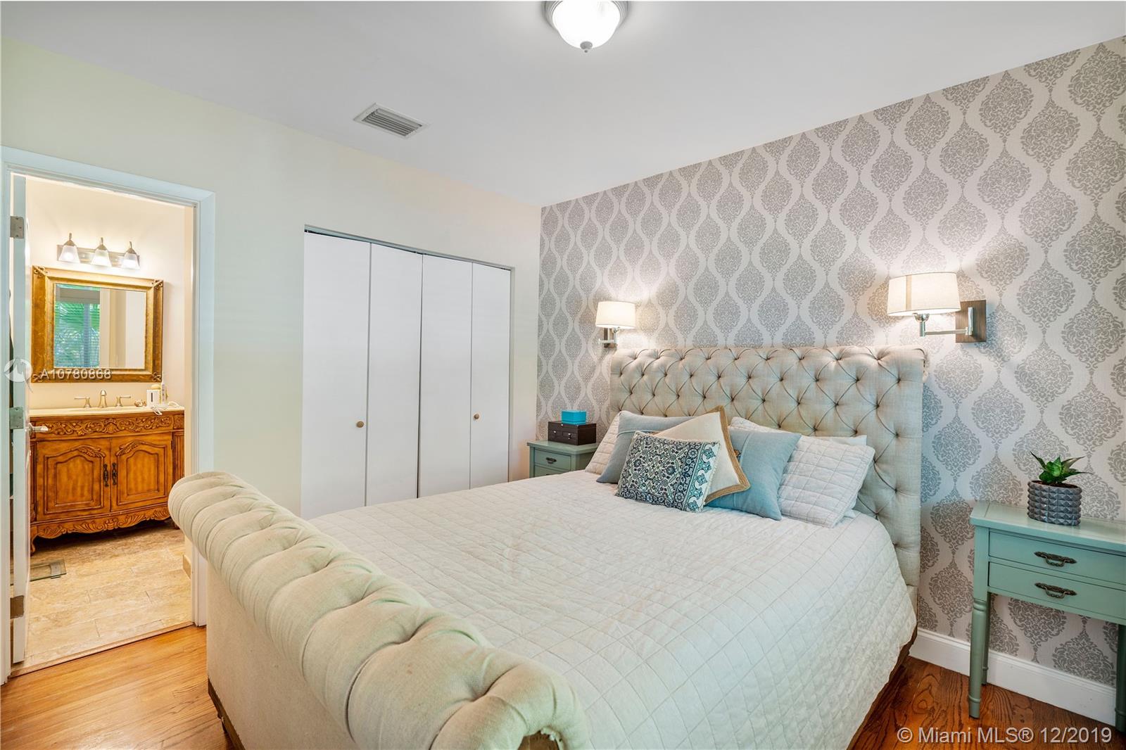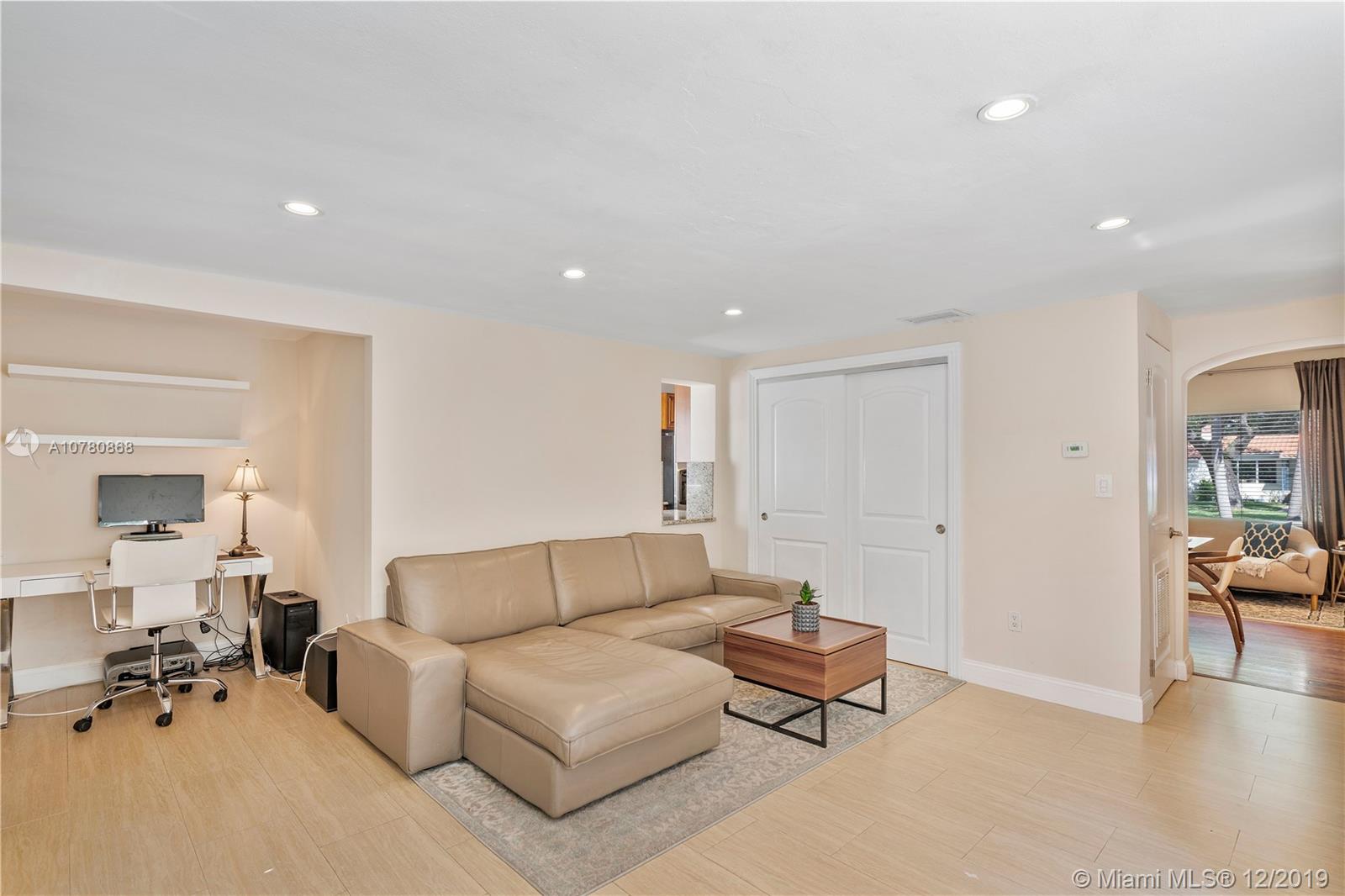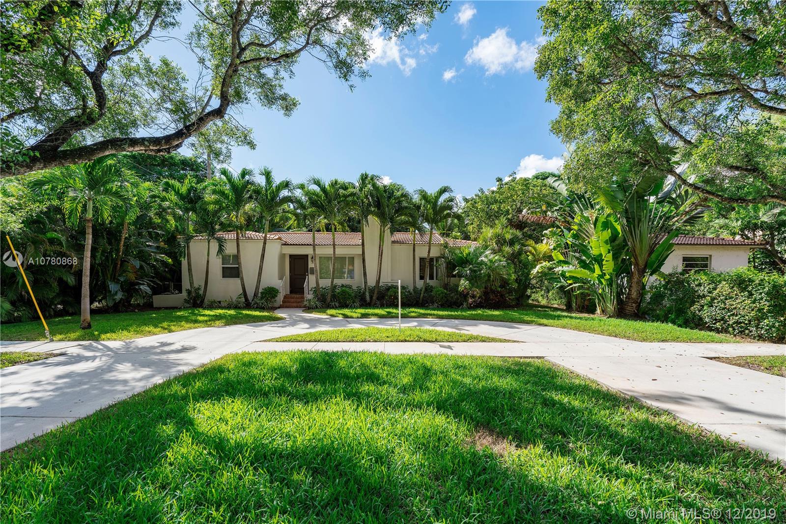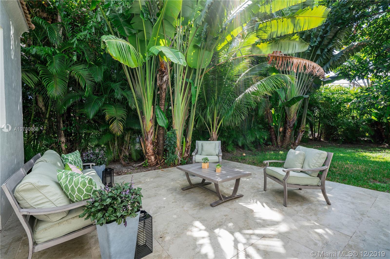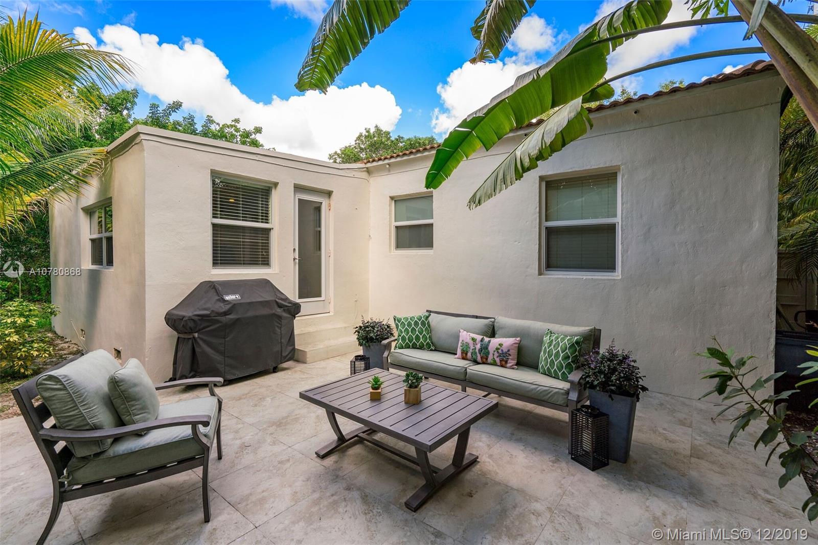 Tastefully updated Art Deco home in Miami Shores. Many special features include: Stylish kitchen and baths, hurricane impact resistant windows & a beautiful fireplace. Wood and tile flooring. Split bedroom plan with 3 bedrooms and 2 baths. Family room overlooking tropically landscaped backyard fenced for privacy with a patio perfect for entertaining and enjoying the outdoors. Large lot with circular drive and room for pool.