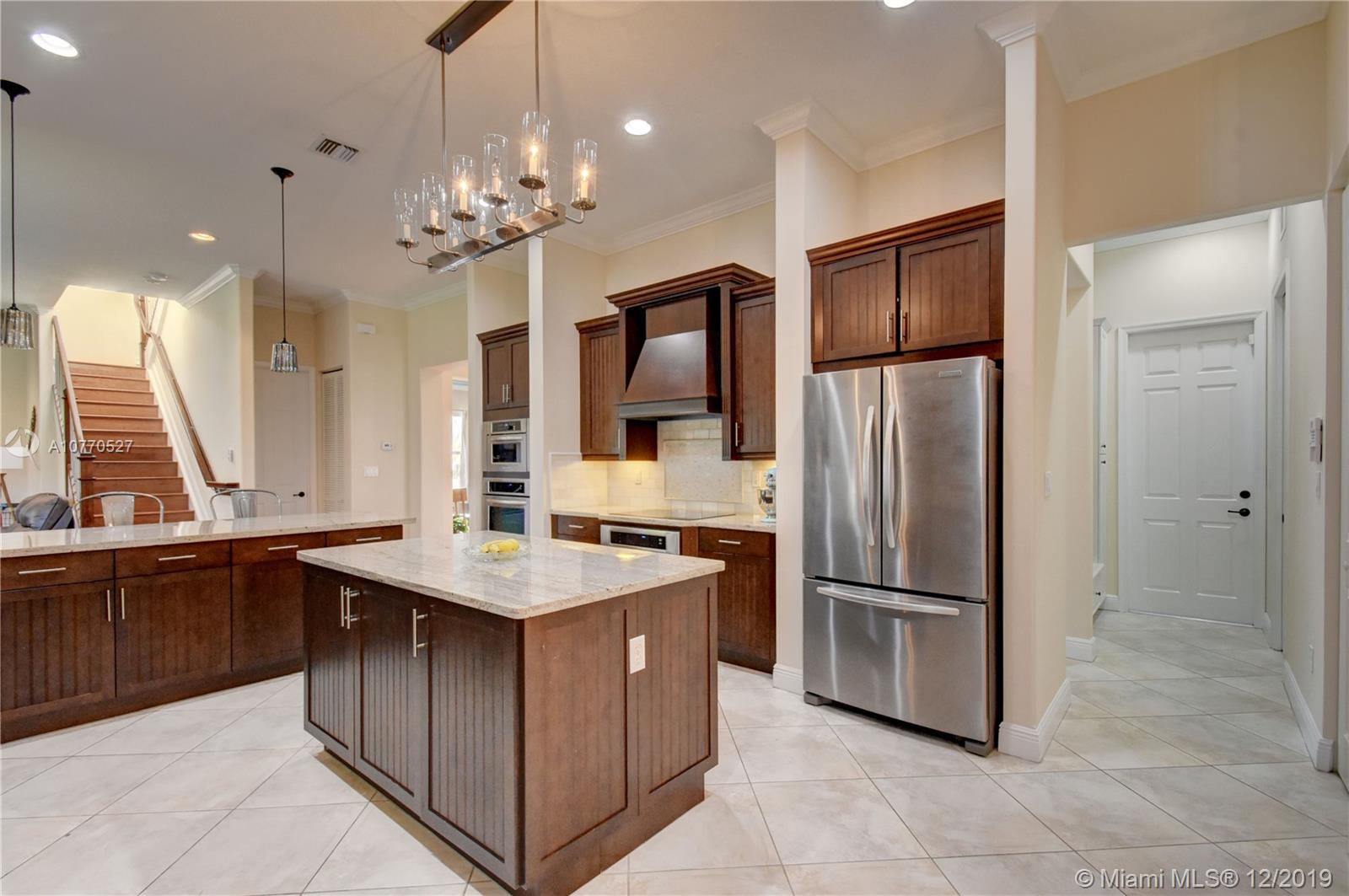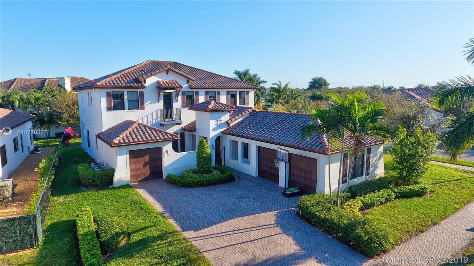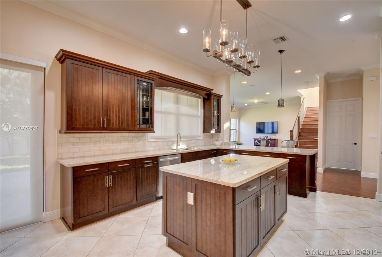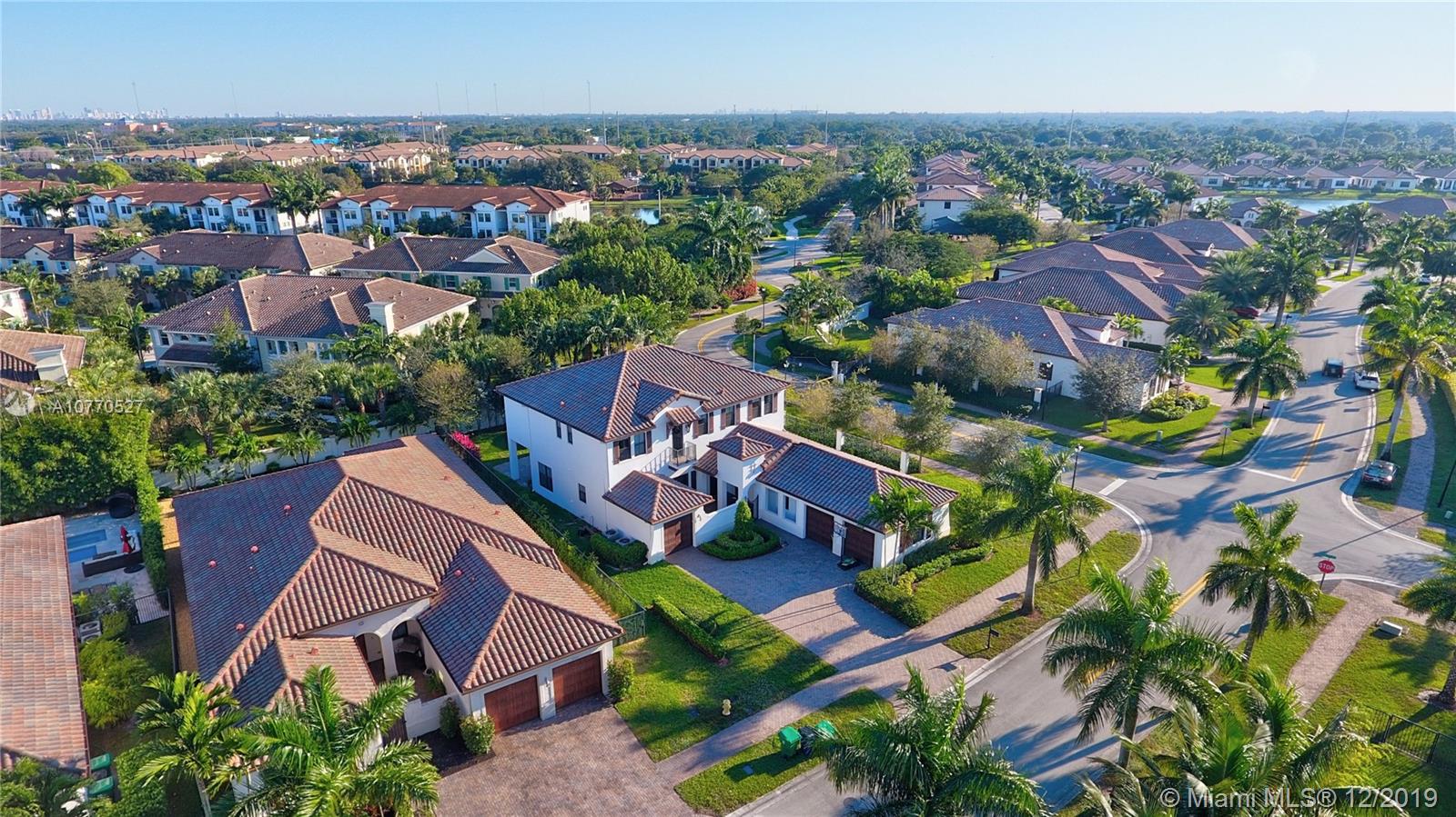 Highly upgraded CORNER LOT Delano Model offers a spectacular OPEN FLOOR PLAN with 5 bedrooms, 5.5 bathrooms and a separate in-laws or guest suite with private entrance and mini kitchen w/ microwave, sink and bar fridge. Top of the line kitchen with DOUBLE OVENS, wood cabinets, granite counter, walk in pantry, center island and breakfast bar. Hardwood throughout, plus tile in the kitchen and carpet in 3 bedrooms. Other upgrades include IMPACT WINDOWS, Crown Molding, ELECTRIC WINDOW TREATMENTS, BUILT OUT CLOSETS, SURROUND SOUND & Outdoor Speakers & 3 Car Garage. Monterra is a secure gated community, which offers tennis, basketball courts, fitness center, dog park, playground & clubhouse + A RATED SCHOOLS minutes from Miami and to I75, the Turnpike and I595.
