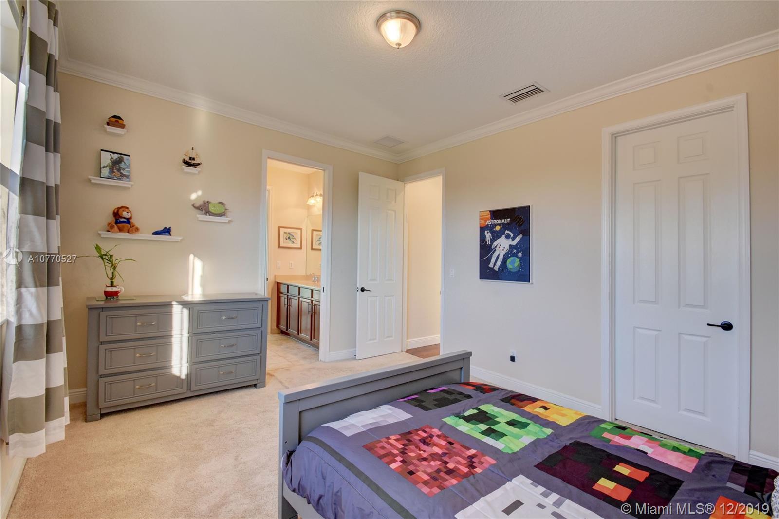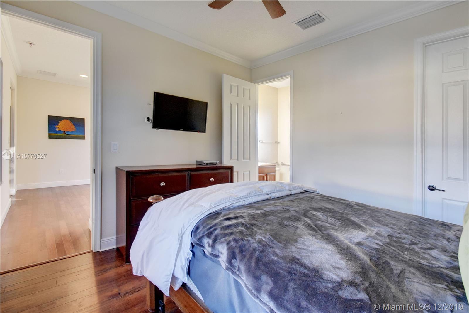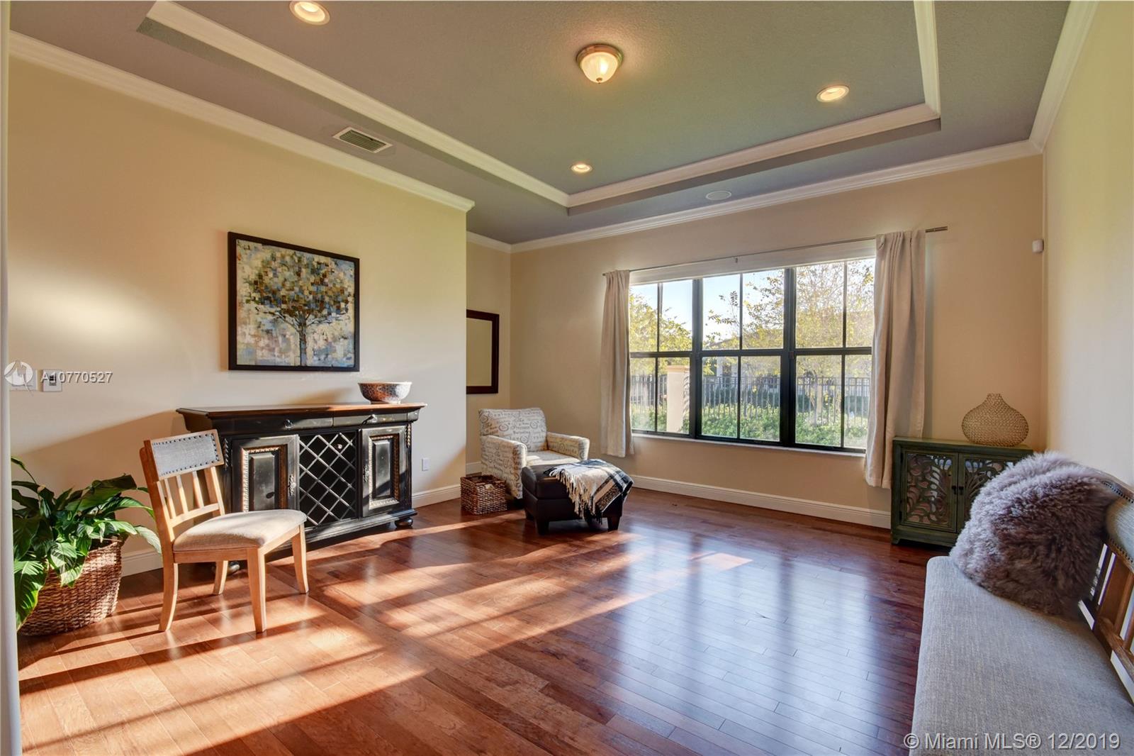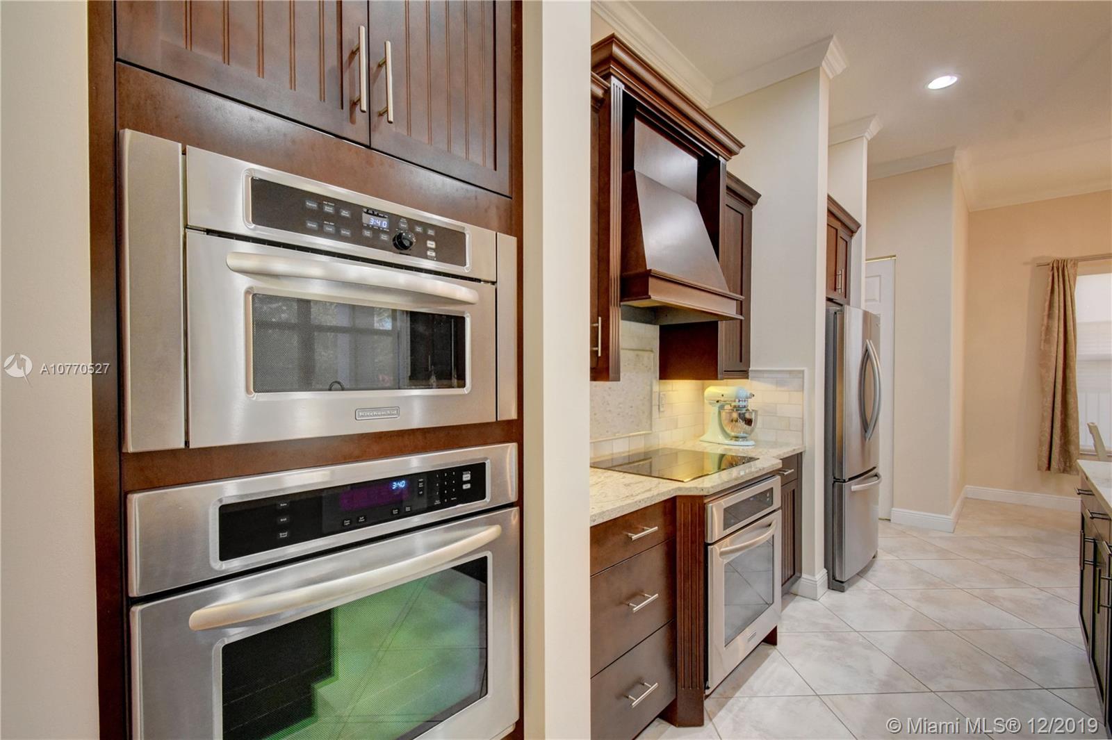Highly upgraded CORNER LOT Delano Model offers a spectacular OPEN FLOOR PLAN with 5 bedrooms, 5.5 bathrooms and a separate in-laws or guest suite with private entrance and mini kitchen w/ microwave, sink and bar fridge. Top of the line kitchen with DOUBLE OVENS, wood cabinets, granite counter, walk in pantry, center island and breakfast bar. Hardwood throughout, plus tile in the kitchen and carpet in 3 bedrooms. Other upgrades include IMPACT WINDOWS, Crown Molding, ELECTRIC WINDOW TREATMENTS, BUILT OUT CLOSETS, SURROUND SOUND & Outdoor Speakers & 3 Car Garage. Monterra is a secure gated community, which offers tennis, basketball courts, fitness center, dog park, playground & clubhouse + A RATED SCHOOLS minutes from Miami and to I75, the Turnpike and I595.