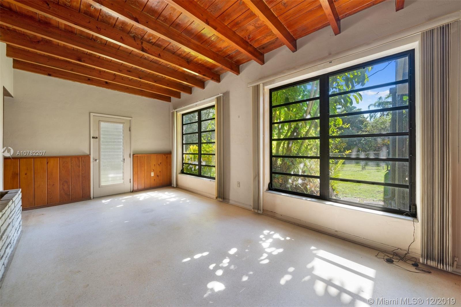 Restore this mid-century modem vintage beauty or build your dream home! This wonderful property just short of an acre is a fantastic opportunity, surrounded by sprawling multi-million-dollar homes, in the highly sought-after Pine Acres Estate area of North East Pinecrest. Original home has fantastic and flexible split-floor plan with 4 bedrooms and 2 bathrooms. Terrazzo flooring, vaulted tongue-in-groove ceilings and spacious living areas. Bright eat-in kitchen overlooks the deep covered patio, sparkling pool and majestic sprawling lawn. Just minutes away from all the best shops, restaurants and top-rated private and public schools. The potential is certainly here to make this property a showcase for your masterpiece!