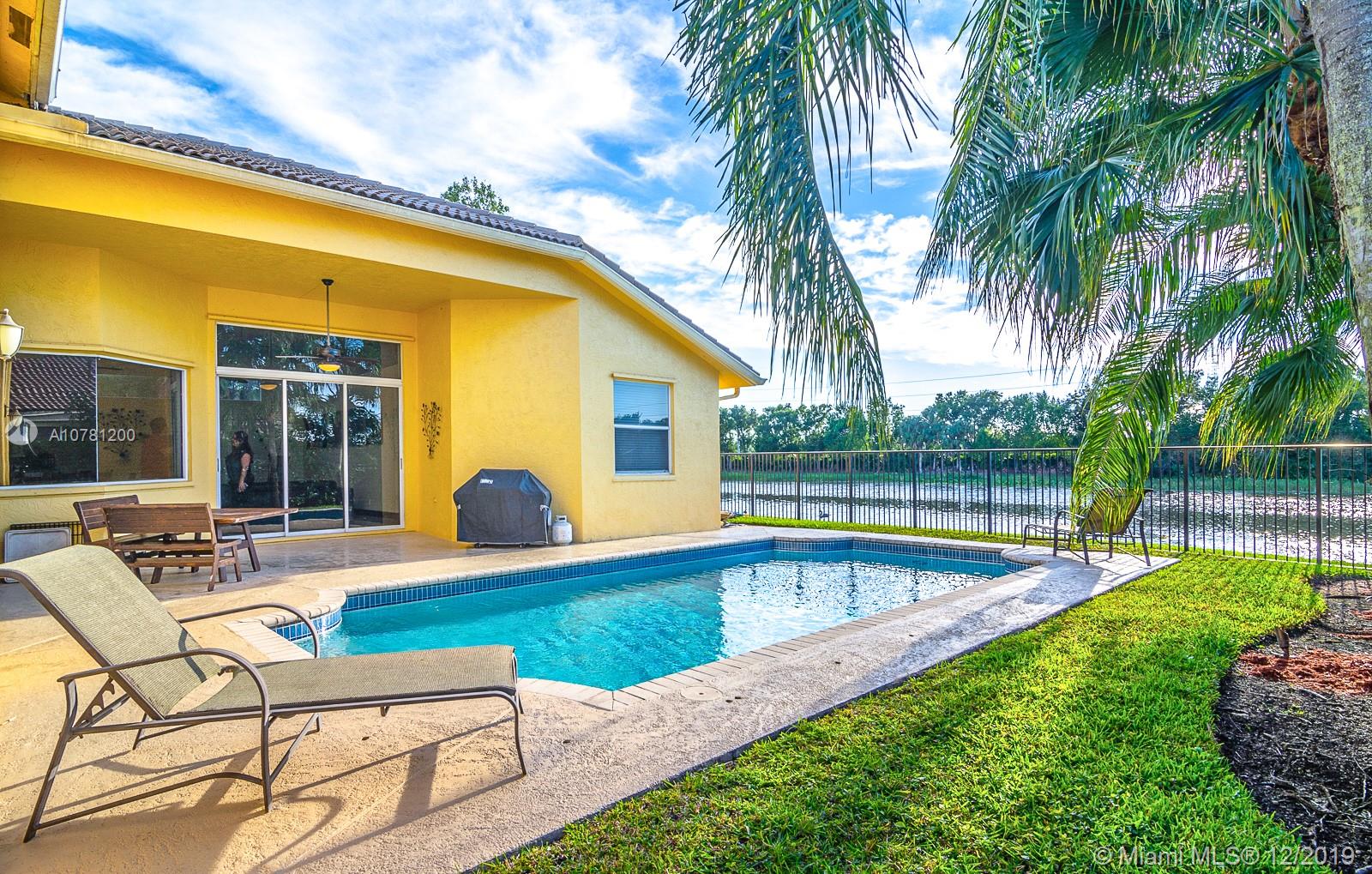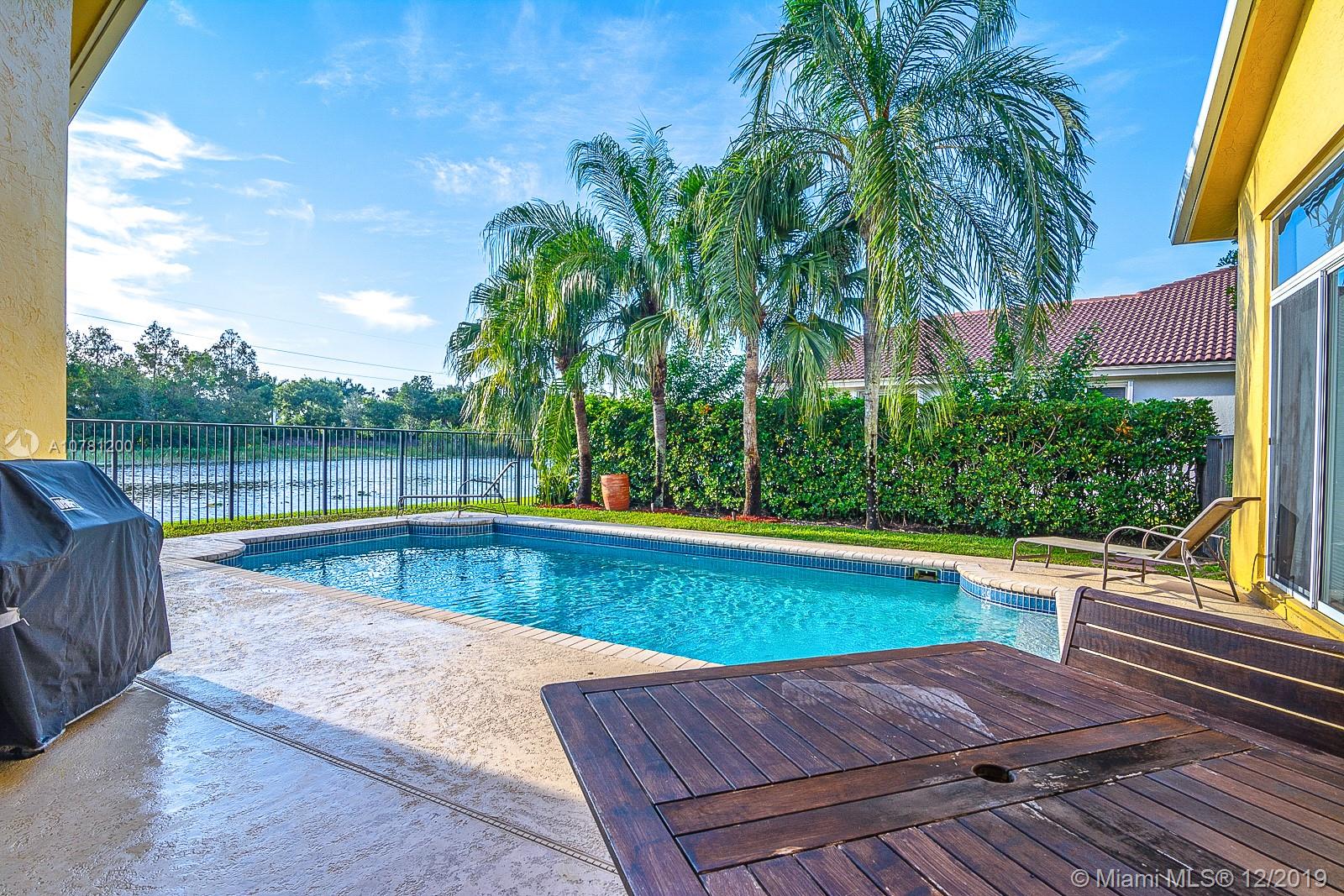 Beautiful affordable house with spectacular view where one can enjoy the sunset while lounging in the pool, the upgrades include marble in social areas and bathrooms. Open kitchen that is wonderful to host friends and family with a spectacular view of the pool and lake. Sliding doors throughout house invite beautiful natural lighting. Community has Country Club with 2 18 hole Golf Course. Amazing for children, surrounded by young work families and "A" rated Schools