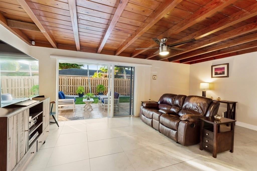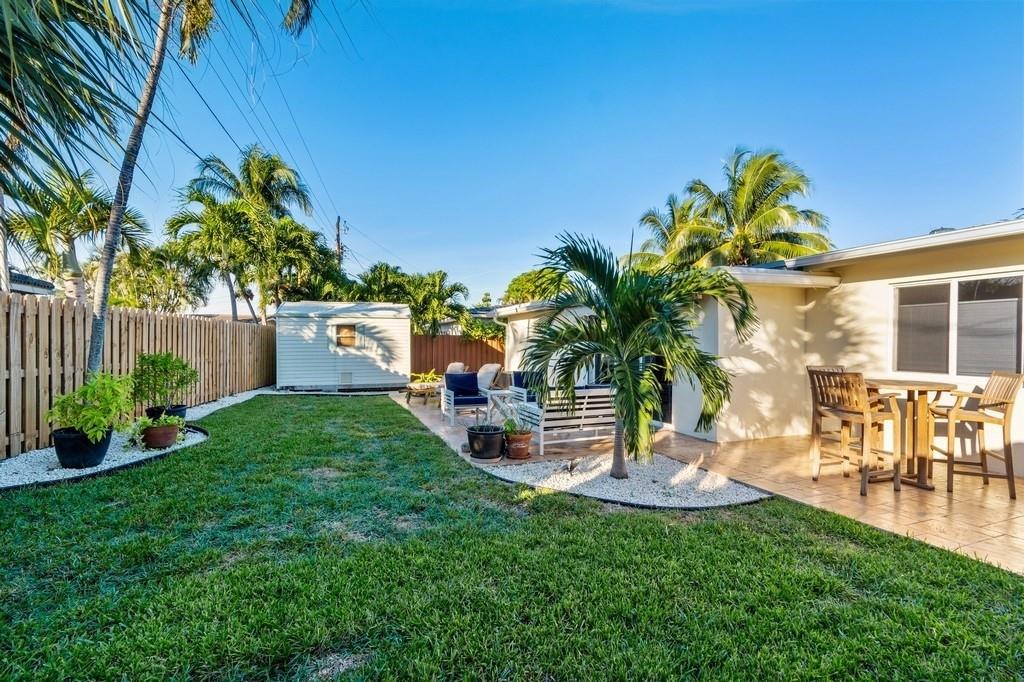 Nicely updated three bedroom, two bath home on tranquil street in popular Poinsettia Heights! Open floor plan includes spacious living and dining area leading to family room with beamed wood ceilings which opens to patio with retractable awning and cute back yard. Updated kitchen features light granite counter tops, white cabinetry and stainless appliances. Split Bedrooms, Impact windows and doors, and Interior Laundry Room with extra storage! 24" Tile Flooring throughout. Exterior features include stamped concrete driveway and patios, fully fenced backyard, fully permitted shed, and low maintenance landscape plan. Ideal location is only minutes away from Downtown Fort Lauderdale, Las Olas Boulevard, Wilton Drive, Fort Lauderdale Beach, Galleria Mall, restaurants, shopping and more!