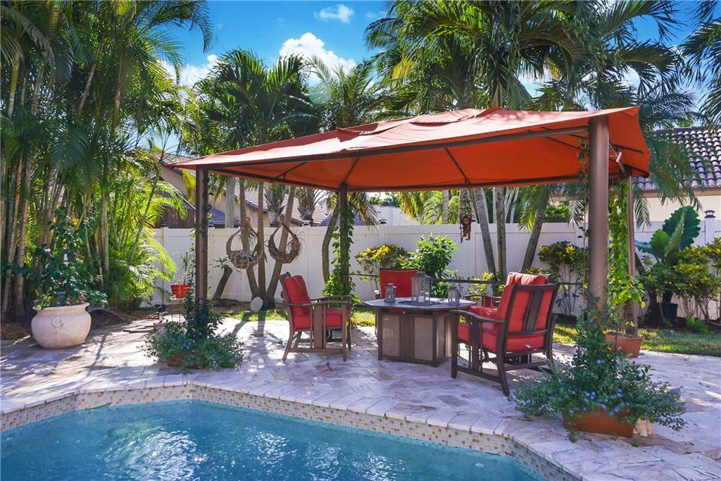 FANTASTIC PRICE REDUCTION! BEAUTIFULLY UPDATED and cared for, this GORGEOUS family home is the one! HUGE sun-filled rooms with fabulous soaring wood ceilings! Charming french doors lead to tropical, resort-style HEATED SALT WATER POOL, spa, MARBLE PATIO, summer kitchen and built-in gas grill! Multi-level patio with covered pergola is great for entertaining! CUSTOM WOOD PLAYHOUSE with sleeping loft and front porch is perfect for little ones! This home has a cozy, wood-burning fireplace, NEW water heater, NEW electrical panel, 3 NEW A/C units, NEWLY painted exterior, 50k of mature landscaping, 5k landscape lighting and pet-safe FULLY FENCED YARD! HUGE marble driveway with basketball hoop fits 6 cars/boat. A-rated schools and NO HOA! An incredible family neighborhood and an incredible home!