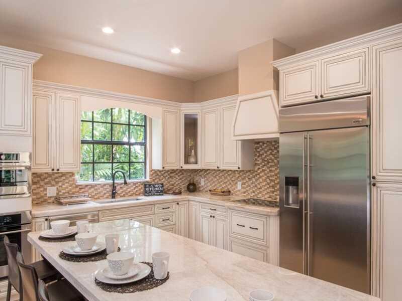 This renovated and move in ready modern Mediterranean home has 5 bd/5.5 ba and was finish built 2007. Abundance of natural light and high ceilings in every room, travertine marble floors throughout. The family room has cathedral ceiling and view to the wa ter fountain in the front patio. Kitchen with high end appliances, antique'd solid wood cabinetry and quartzite countertops. Master bedroom with walk in his/her Cali closets, travertine pool deck with large eat in covered patio and many other features.