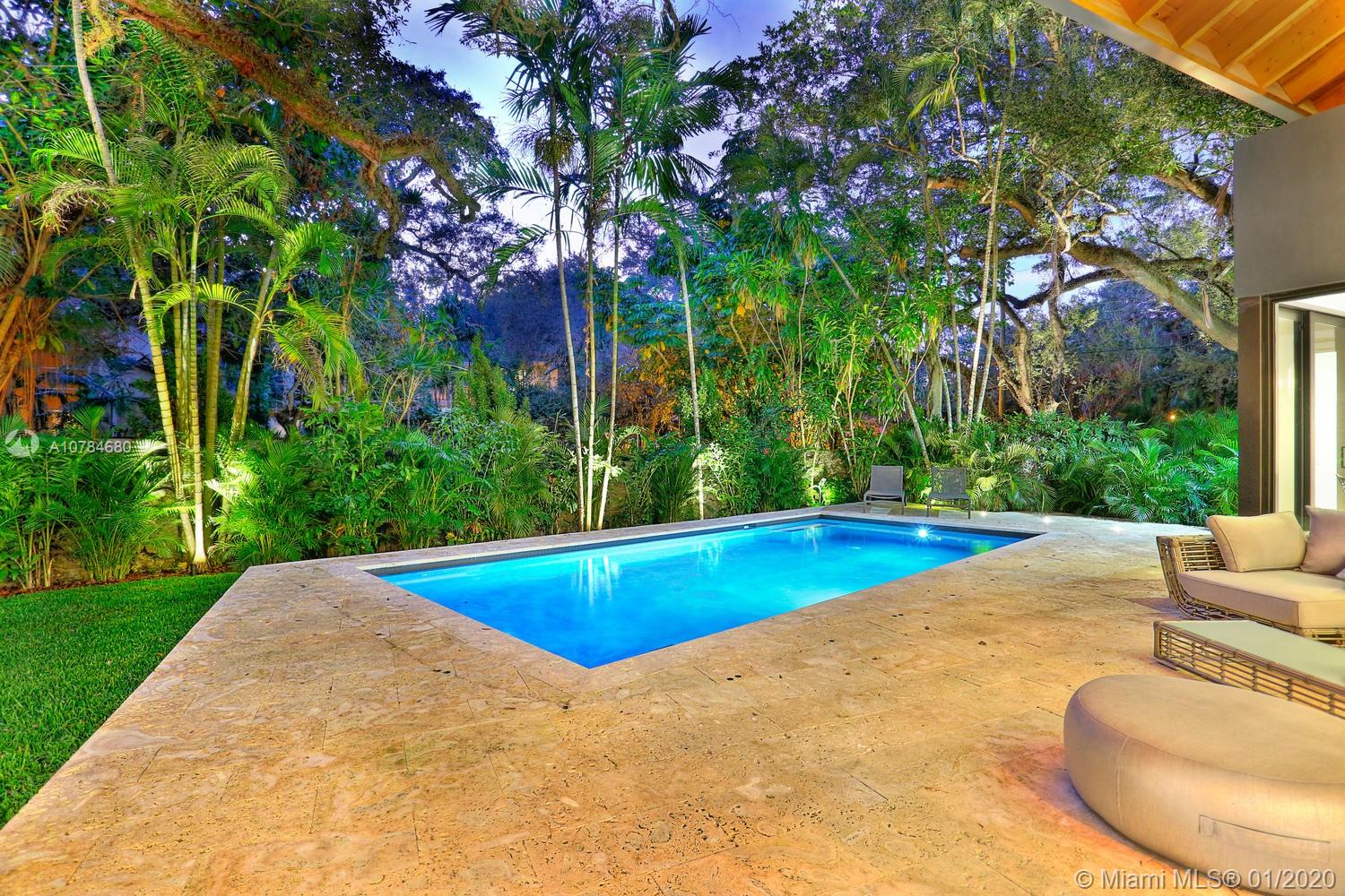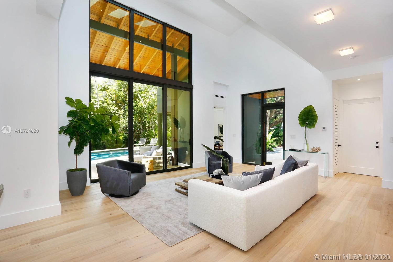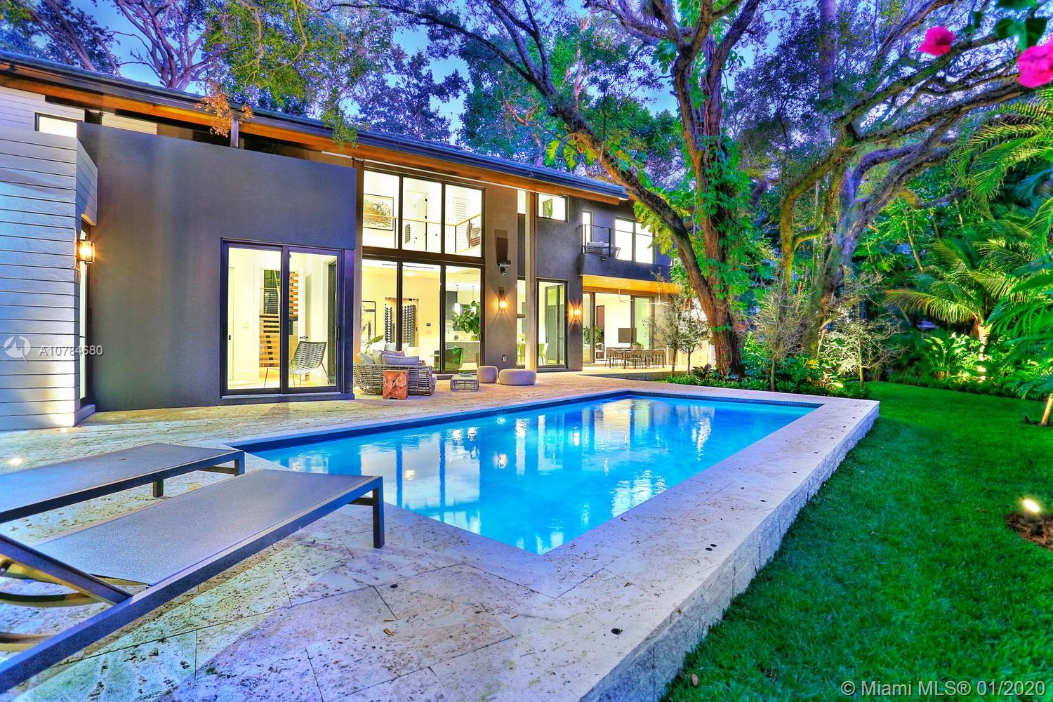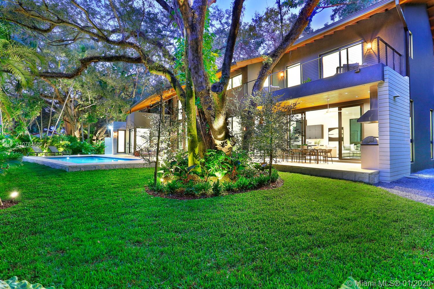 Spectacular architectural masterwork designed by the award-winning & published design teams of James Duncan Interiors and Jose Lobo’s SOW Design Studio. Gated, new construction (5158 SF) residence set behind a coral rock wall & surrounded by 10,836 ~ SF of ultra-private, lush tropical grounds canopied by majestic oaks. Light-filled living spaces offer double-height vaulted wood ceilings, dramatic skylights, Provenza oak wood flooring, 432 bottle wine cellar & Smart Home technologies throughout. Stunning custom kitchen features European style cabinetry, Thermador appliances & marble countertops. Walls of glass throughout create a seamless blending of interior & fabulous exterior spaces with covered terrace for lounging/dining + summer kitchen and pool overlooking the enchanting garden.