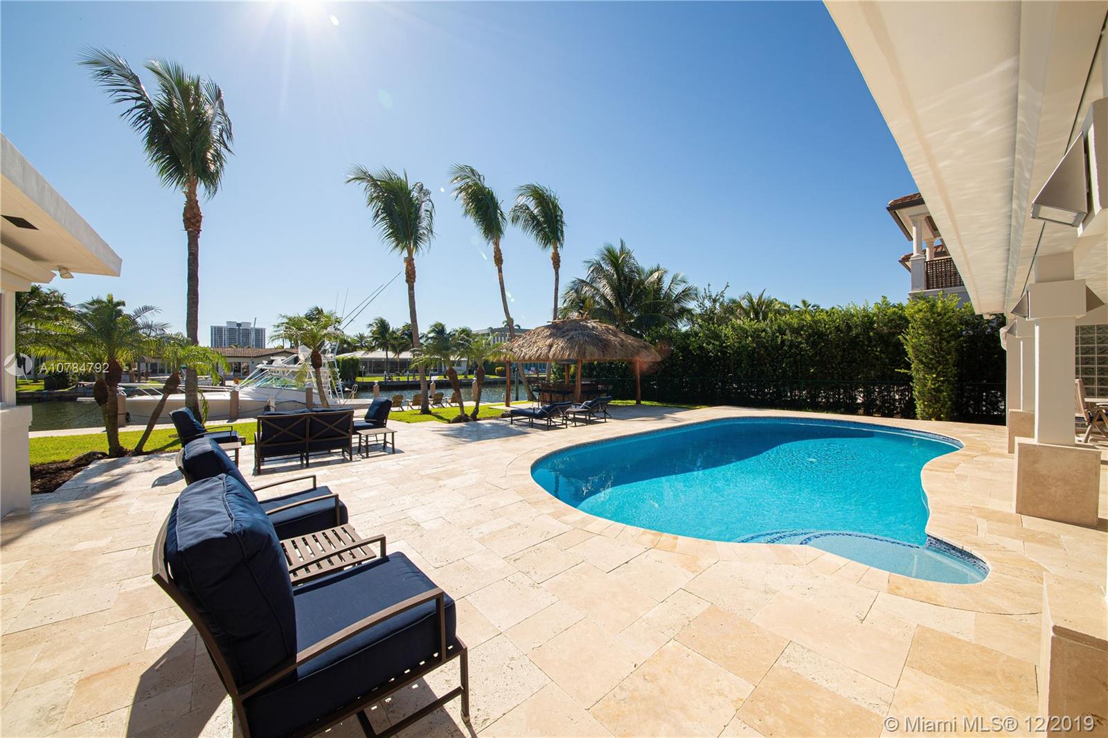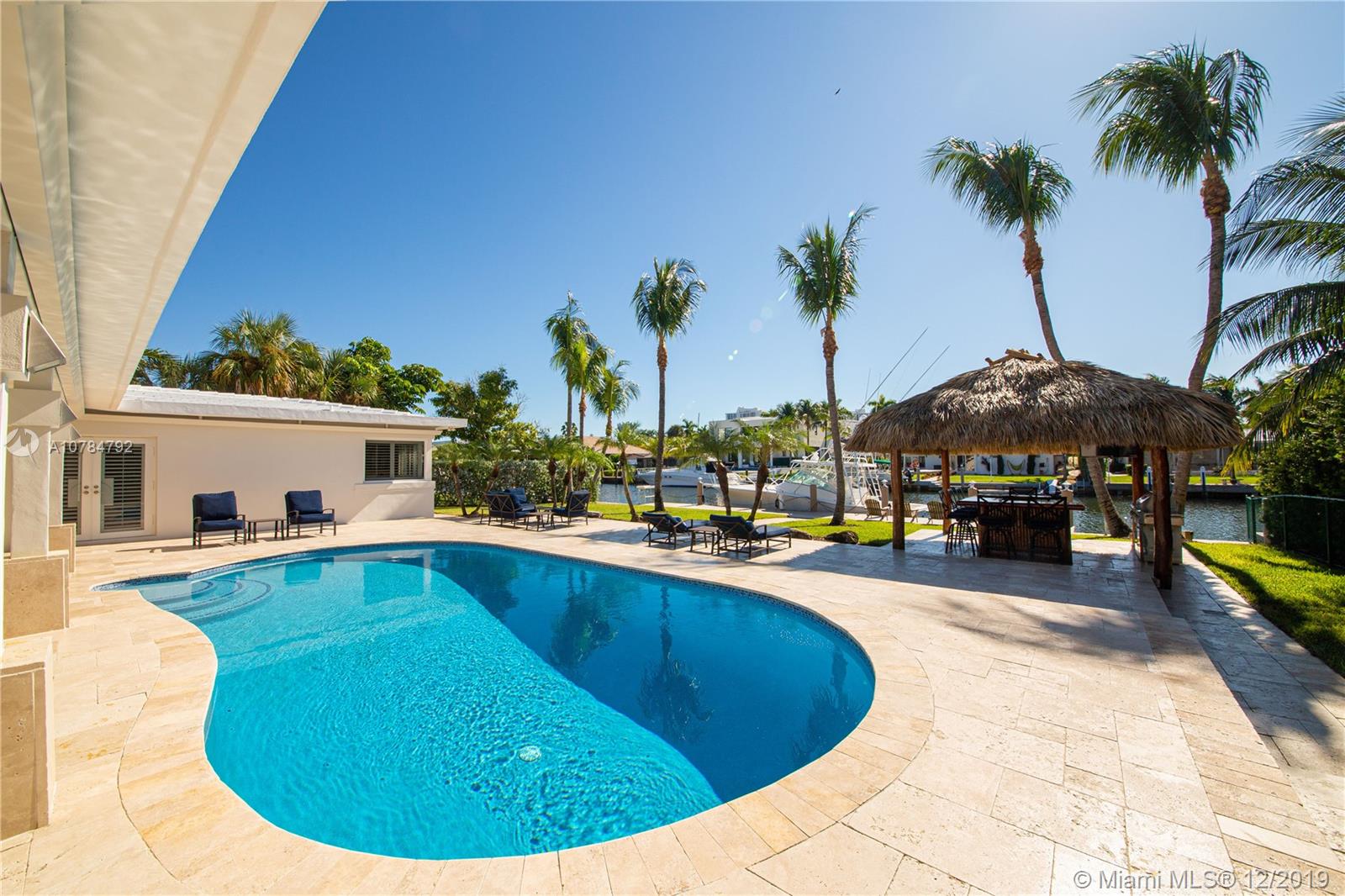 Single story waterfront home in the prestigious Golden Isles neighborhood. 4 bedrooms, 3 bathrooms and 3,608 sq ft on a 12,750 lot. This lovely residence renovations include: new roof, top of the line impact windows and doors, new bathrooms, updated kitchen with all new stone countertops, new travertine floors throughout entire home. Beautiful indoor to outdoor space, pool has all new marble, silent pumps, heater and salt water system, deck includes travertine pavers all around. Features 85 ft on the water! Ready for boaters with all new dock, electric for dock, and completely new sea wall.